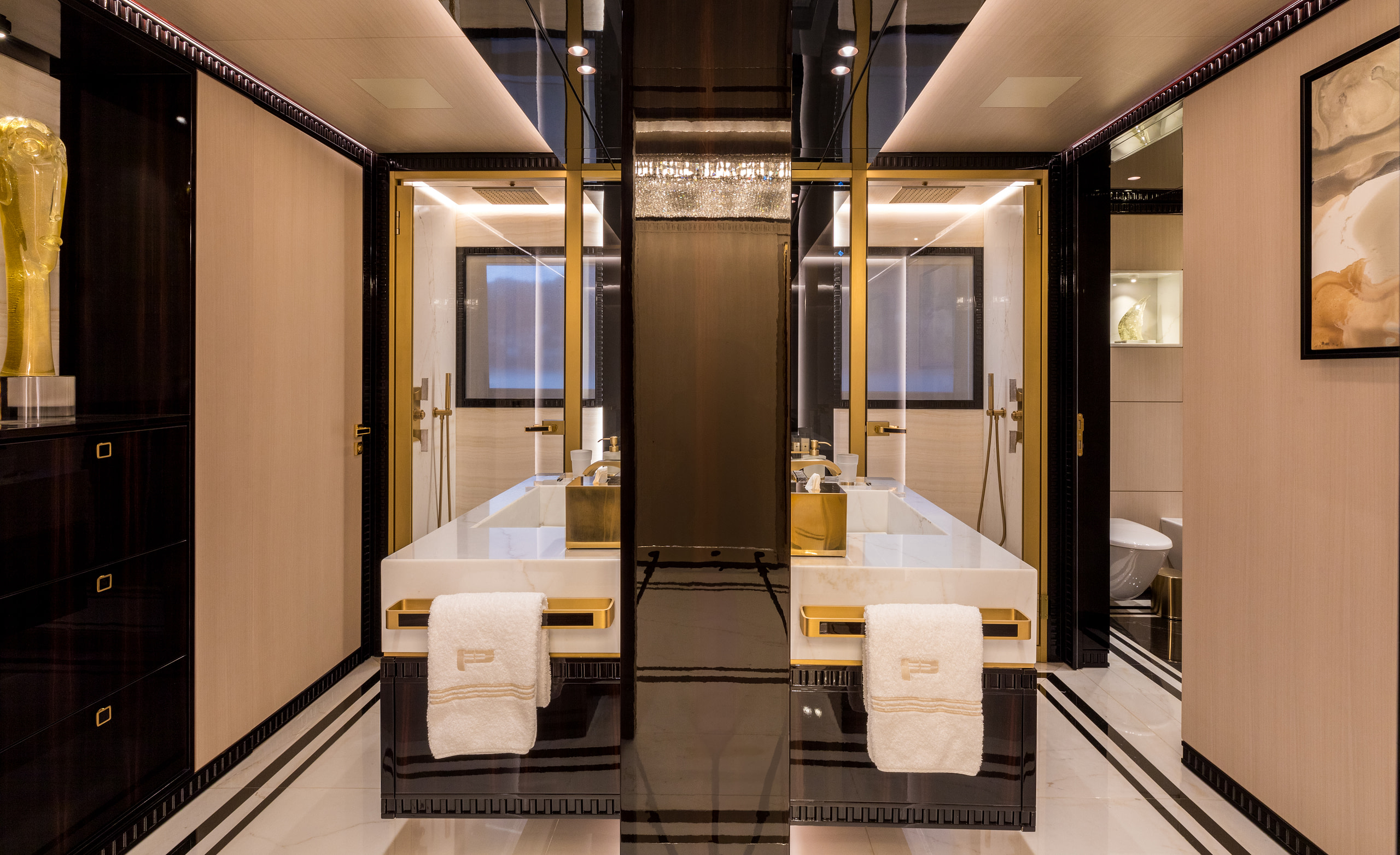 Accommodating up to 12 guests across six stunning suites, Polestar ensures every moment onboard is one of indulgence. The Owner’s deck houses the opulent Master and VIP suites, with the Master suite featuring breathtaking panoramic views and a private office. Four additional suites on the lower deck provide the same level of sophistication, ensuring every guest experiences unparalleled comfort.