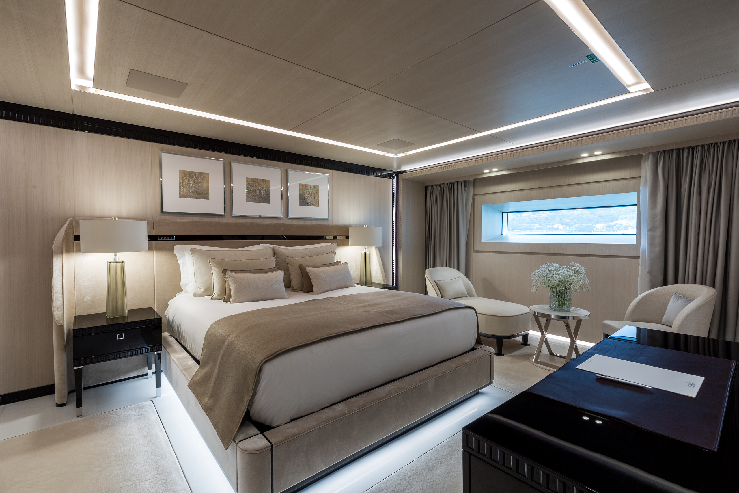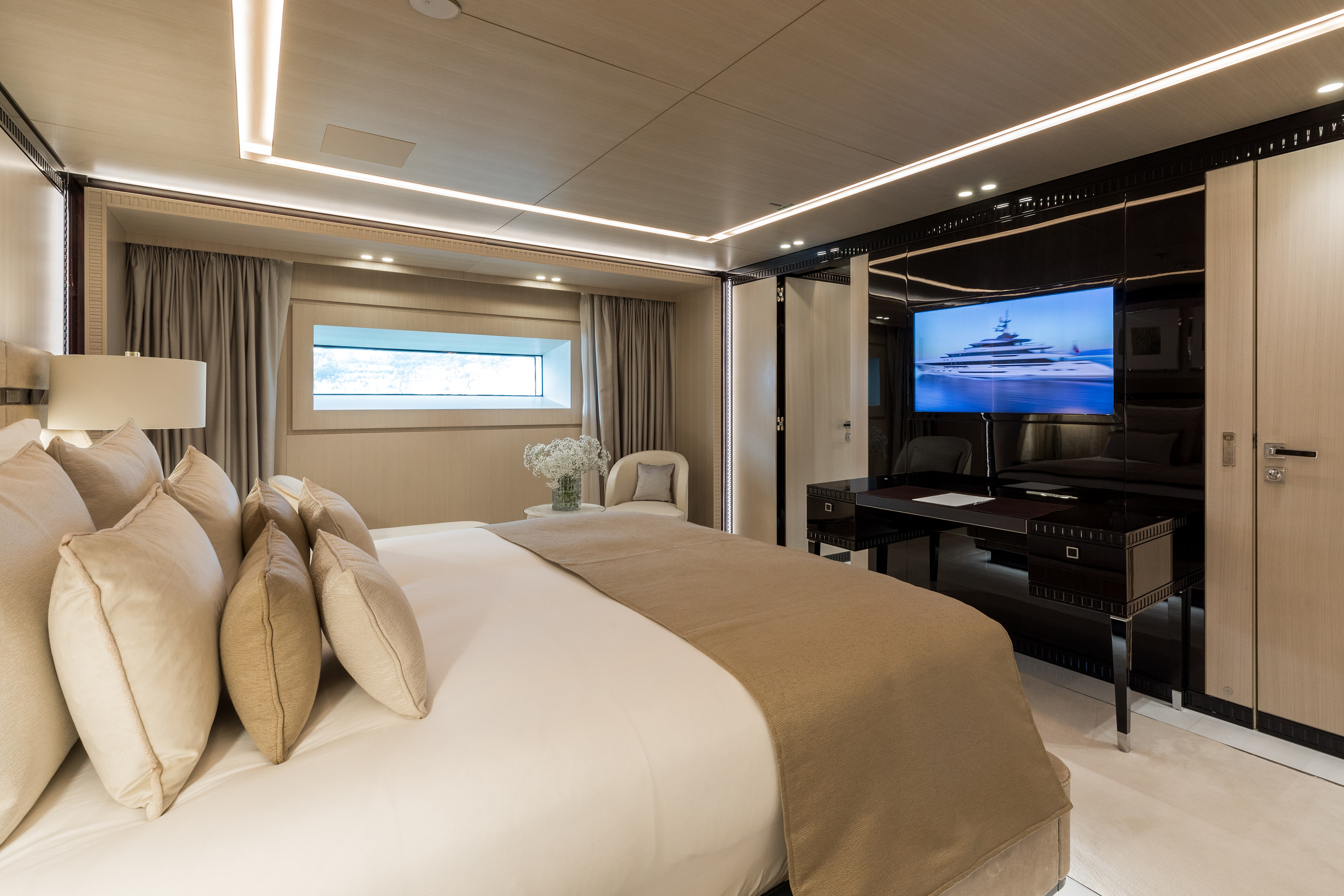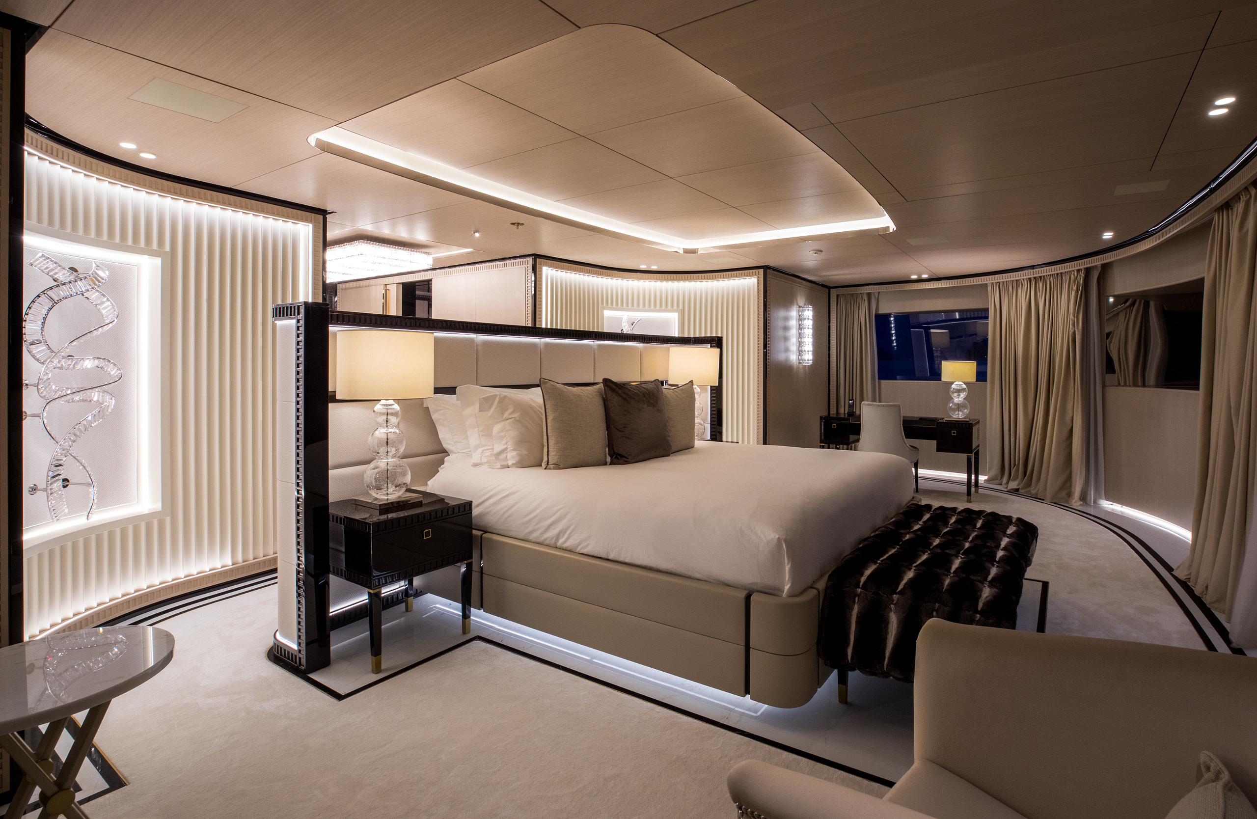 Accommodating up to 12 guests across six stunning suites, Polestar ensures every moment onboard is one of indulgence. The Owner’s deck houses the opulent Master and VIP suites, with the Master suite featuring breathtaking panoramic views and a private office. Four additional suites on the lower deck provide the same level of sophistication, ensuring every guest experiences unparalleled comfort.