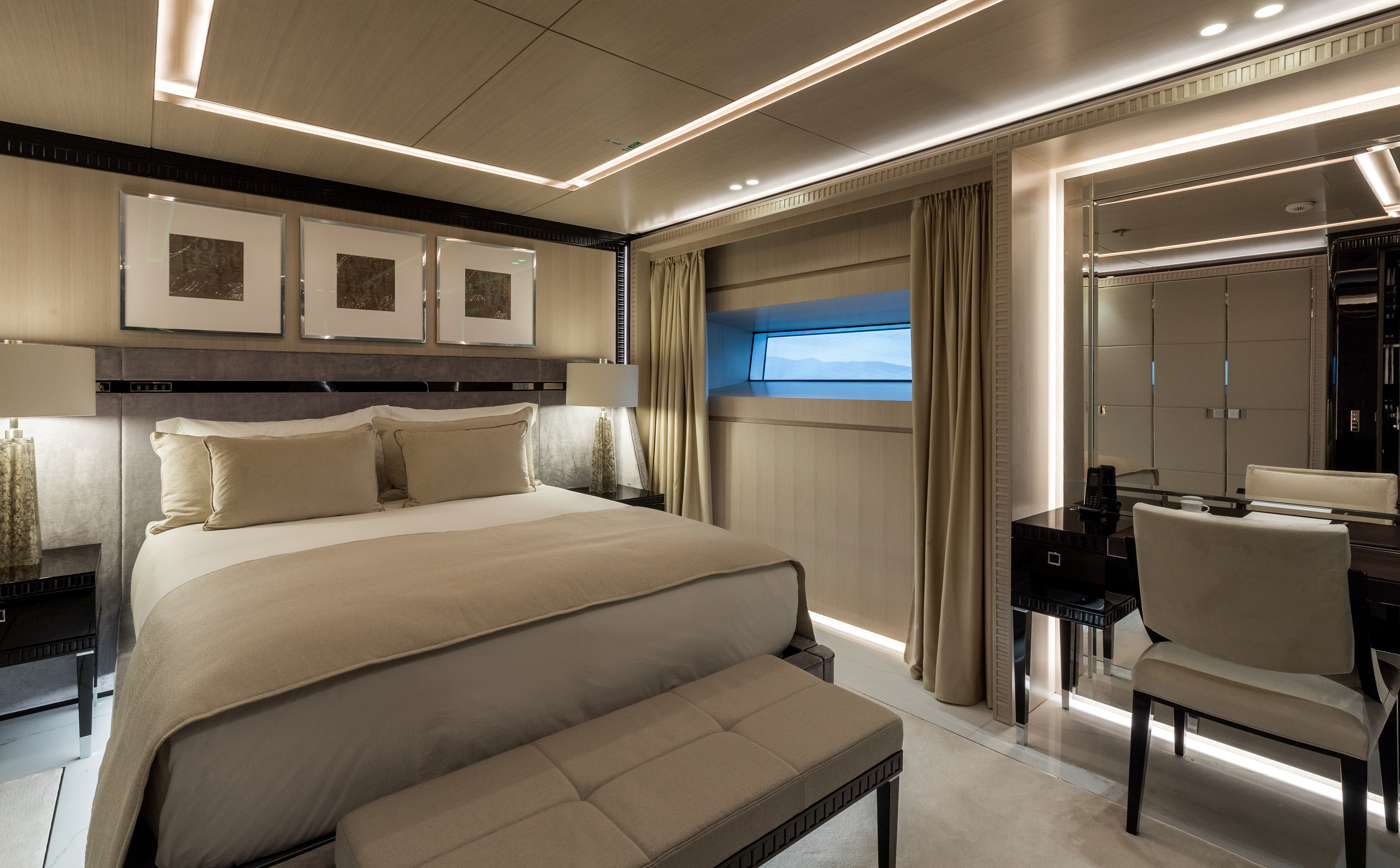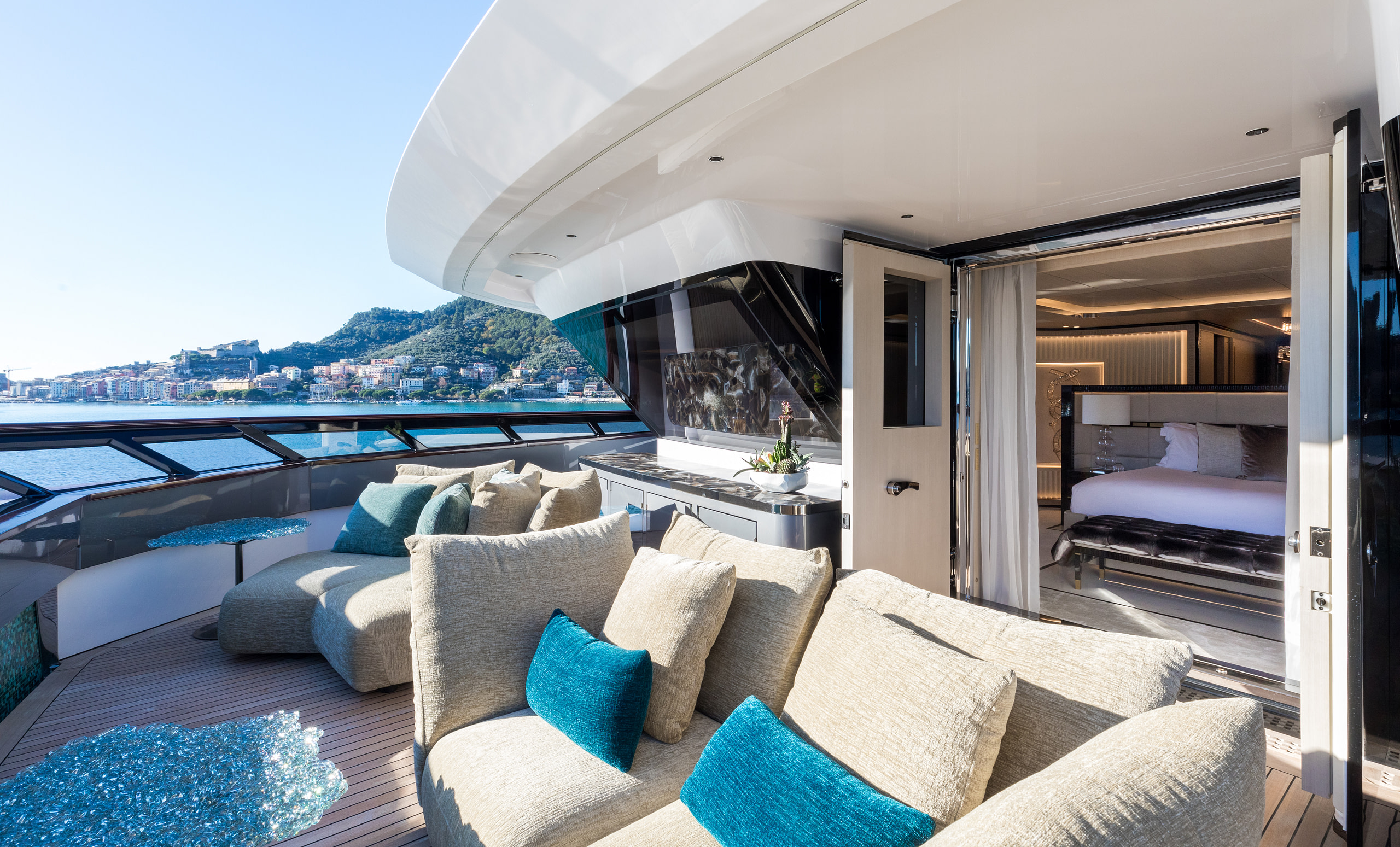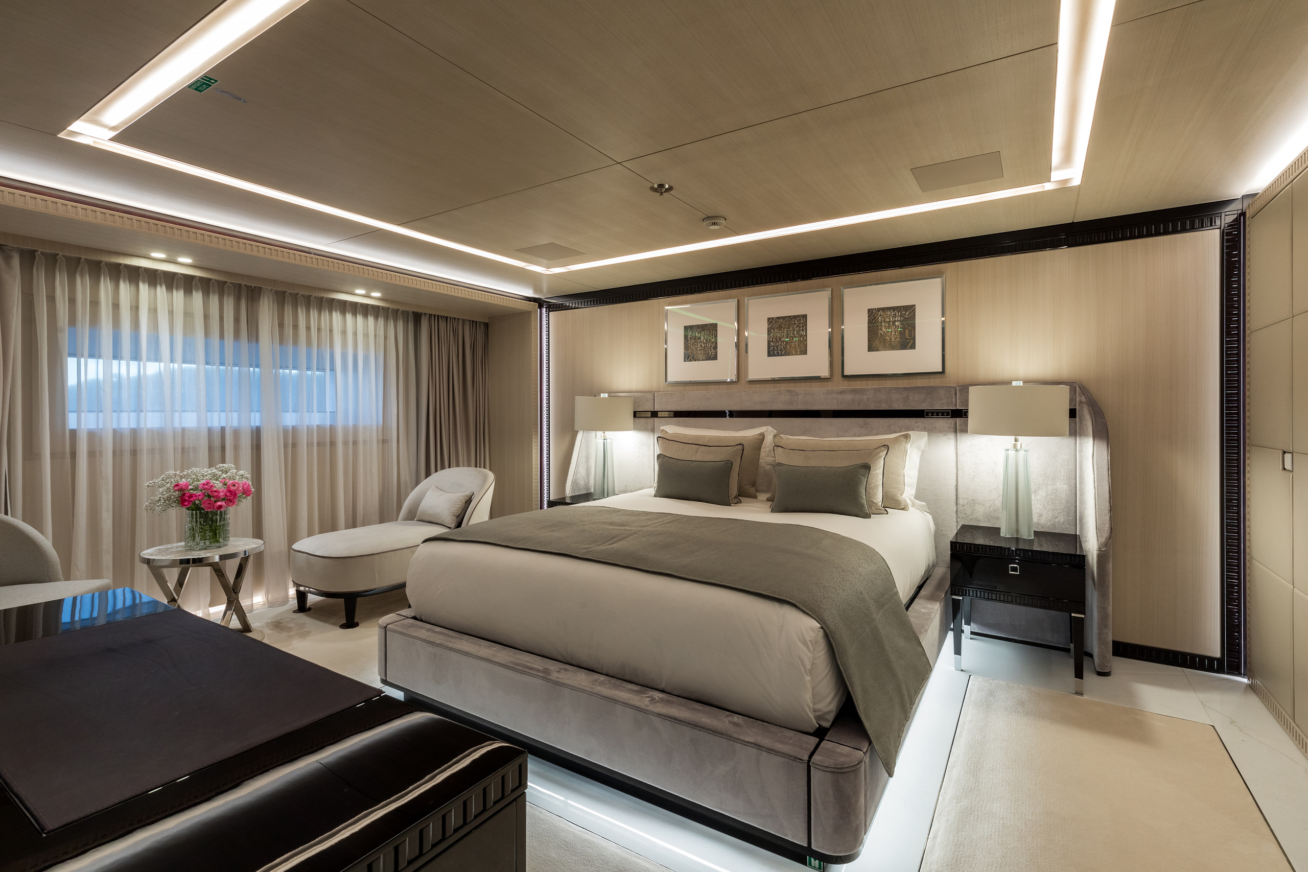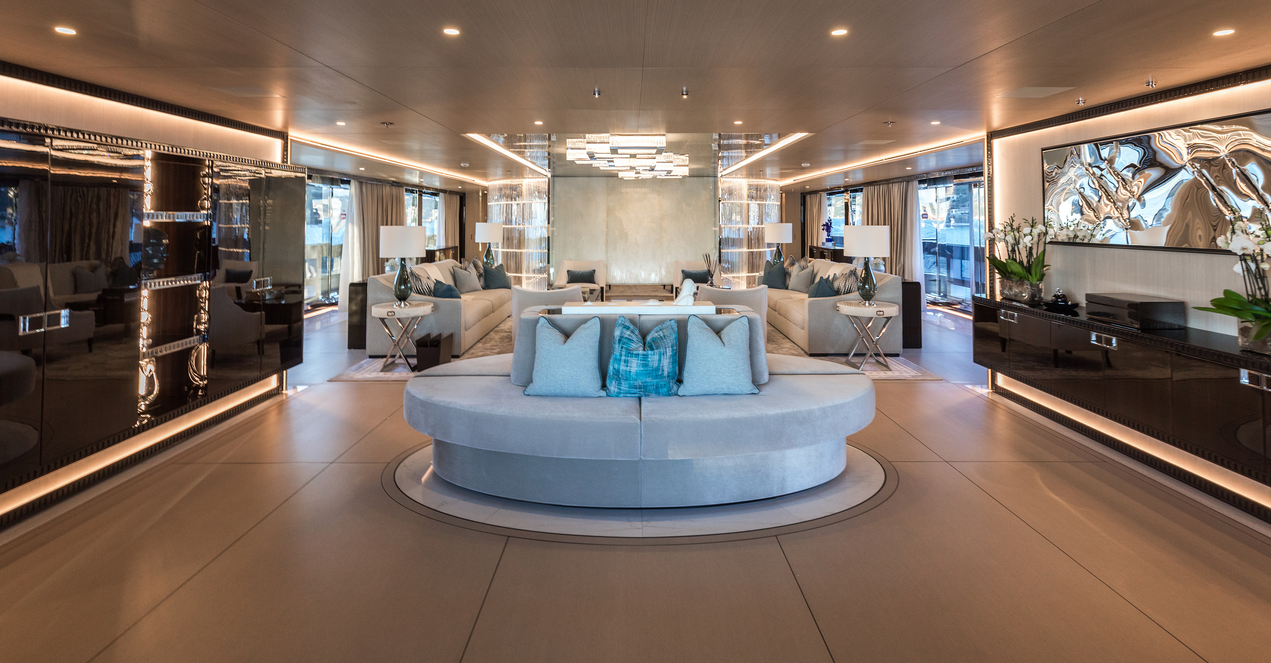 Accommodating up to 12 guests across six stunning suites, Polestar ensures every moment onboard is one of indulgence. The Owner’s deck houses the opulent Master and VIP suites, with the Master suite featuring breathtaking panoramic views and a private office. Four additional suites on the lower deck provide the same level of sophistication, ensuring every guest experiences unparalleled comfort.