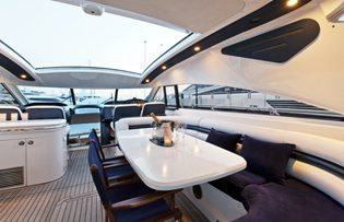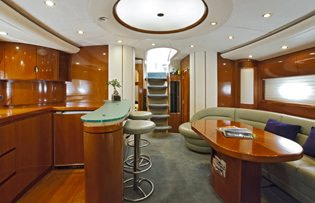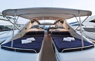 Below deck, the living space is comfortable and timelessly styled. The salon boasts a curved sofa, and the bar is a real treat on a vessel of this size. The chic lighting enhances the rooms potential as a space to entertain. Rest easy in the 2 elegantly designed guest staterooms, both of which boast double beds. In total 4 guests and the crew of 2 can sleep comfortably on-board. If you dream of a luxurious Princess yacht charter, then look no further than the classic Pura Vida.