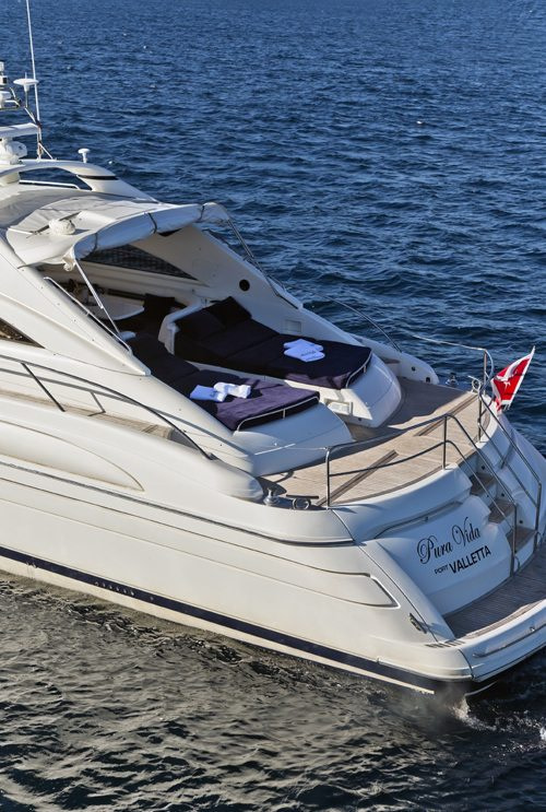 Pura Vida is a luxury motor yacht built by Princess in 2003. With a sleek exterior characteristic of the Princess brand, complimented by the homely interior, Pura Vida promises to offer a memorable Princess yacht charter experience.