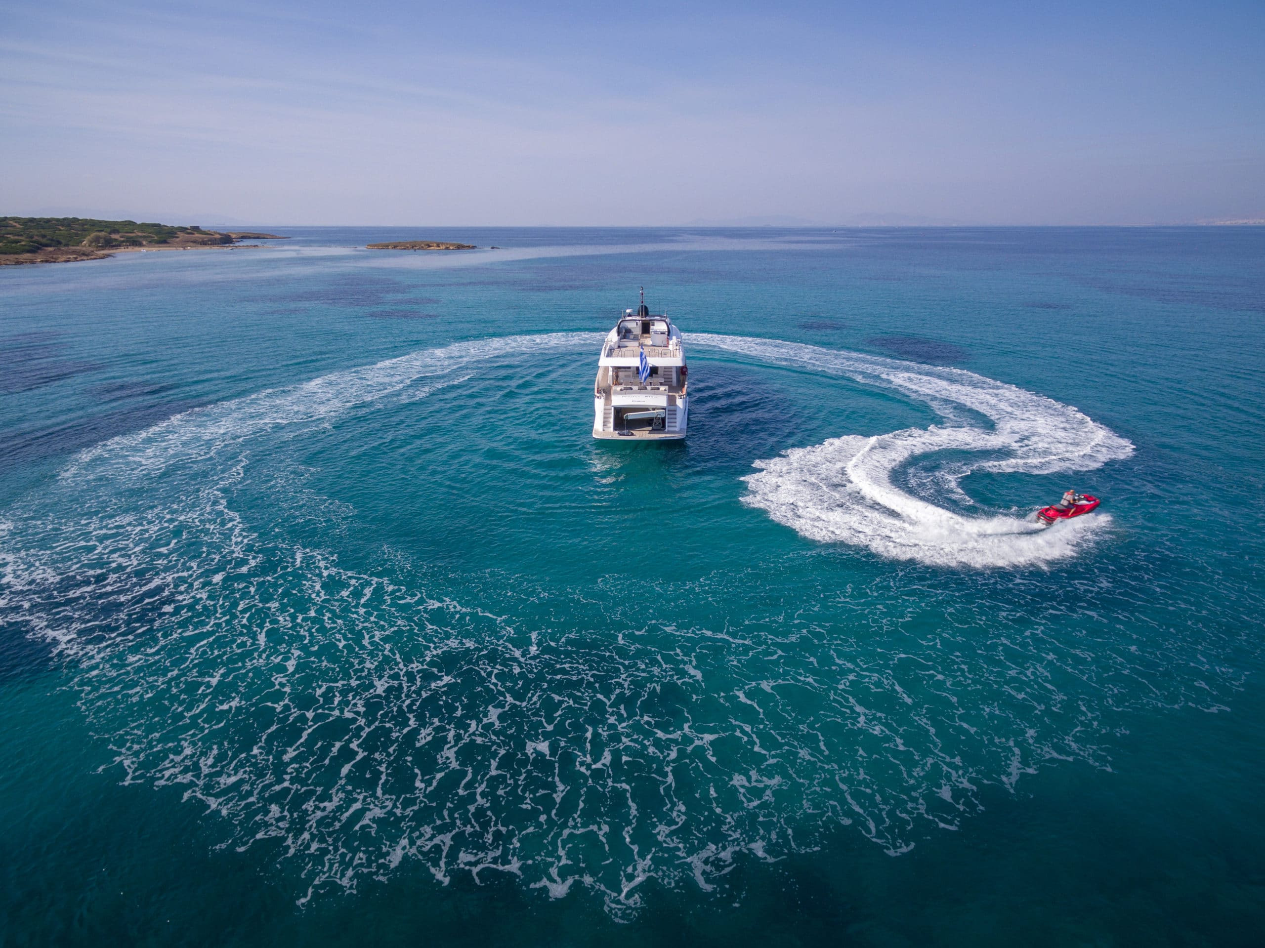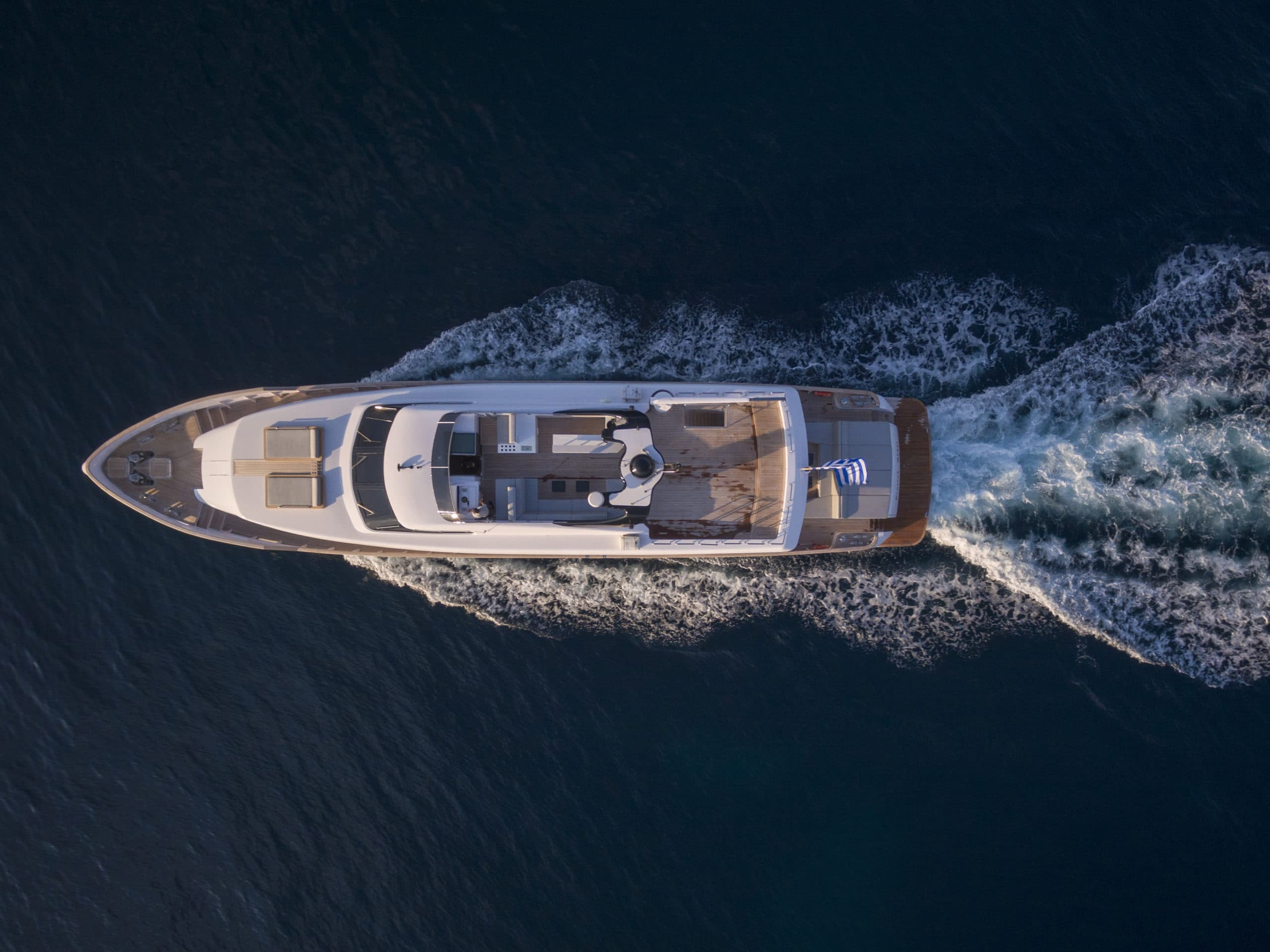 The tough aluminium superstructure and steel hull is a staple to its performance. Her ultra-modern zero speed stabilizers reduce the roll motion effect and ensure the ultimate comfort throughout your charter vacation. With impressive specifications, she is the ideal combination of luxury and performance.