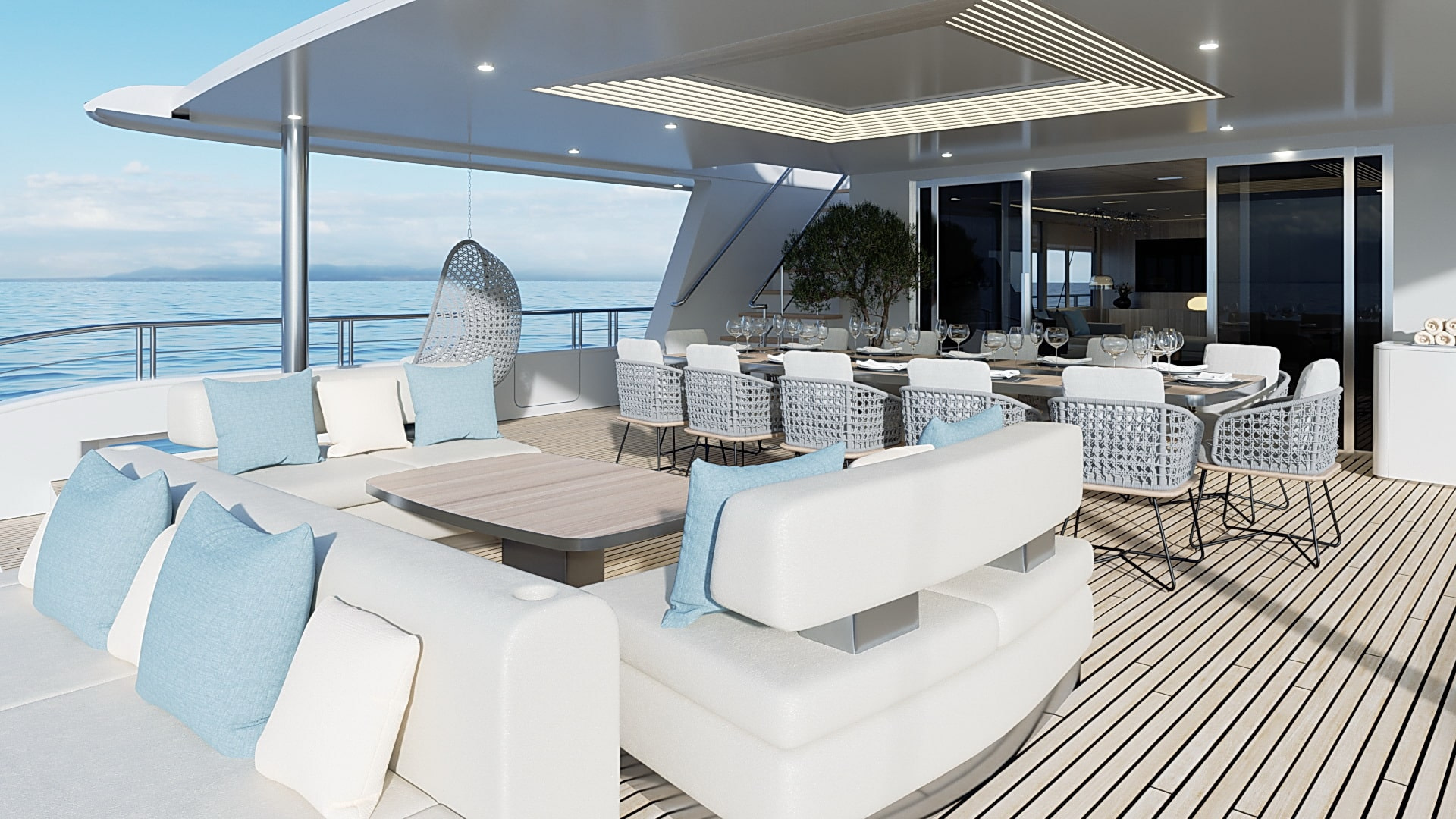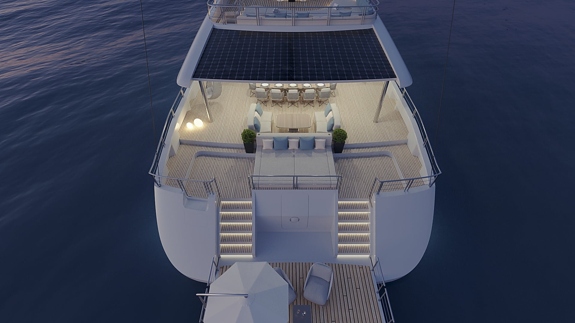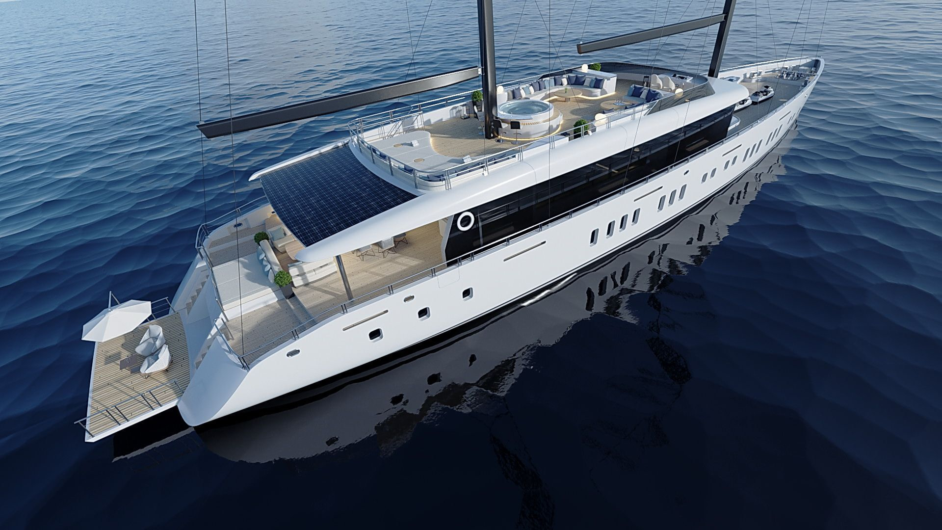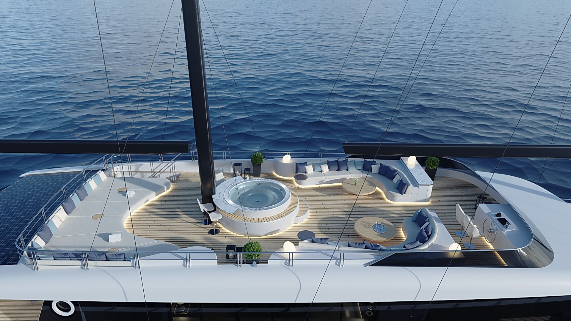 Onboard comfort reaches new heights with amenities like a grand piano, creating an ambiance of sophistication. The deck jacuzzi invites you to unwind with a glass of champagne, while underwater lights add a touch of spectacle after dark. Stay connected with Wi-Fi, and enjoy climate-controlled comfort with air conditioning on this radez luxury charter.