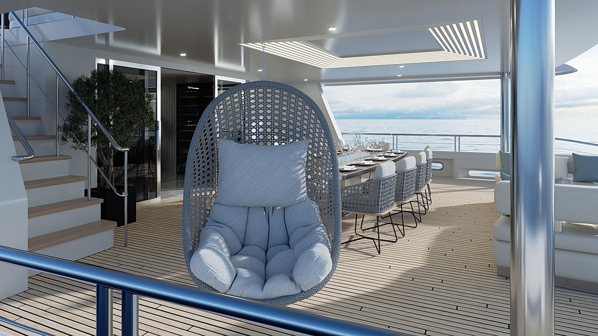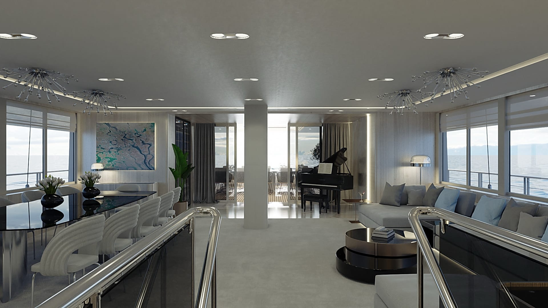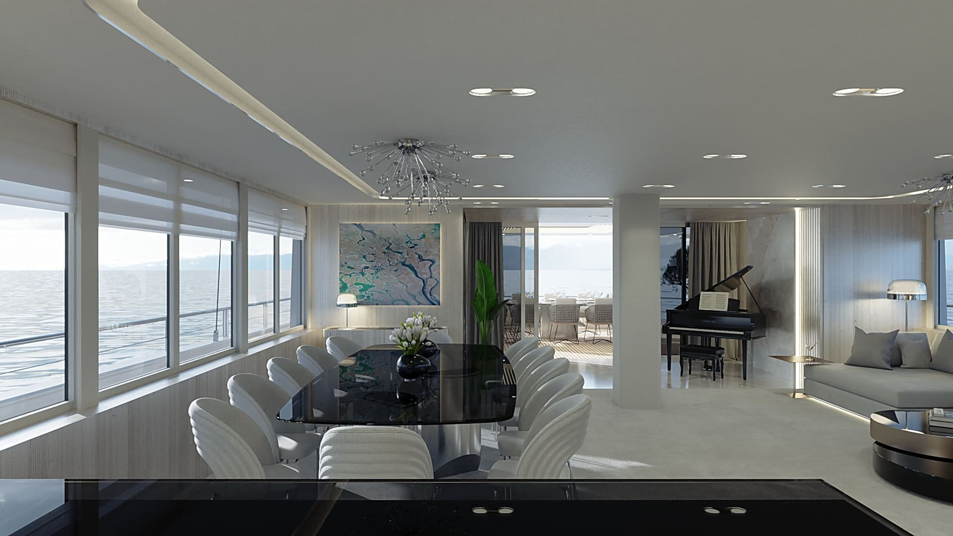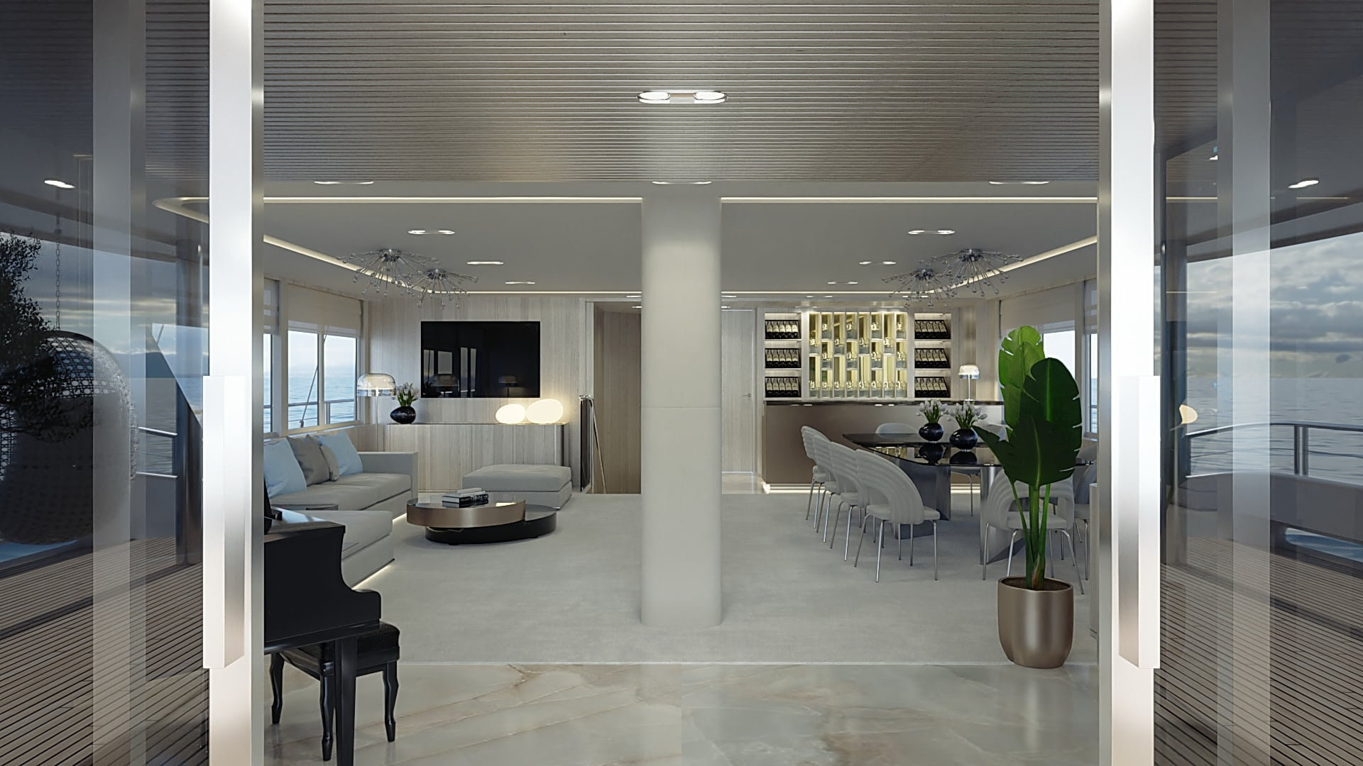 Onboard comfort reaches new heights with amenities like a grand piano, creating an ambiance of sophistication. The deck jacuzzi invites you to unwind with a glass of champagne, while underwater lights add a touch of spectacle after dark. Stay connected with Wi-Fi, and enjoy climate-controlled comfort with air conditioning on this radez luxury charter.