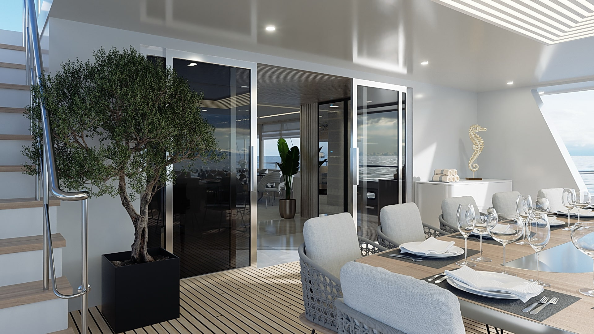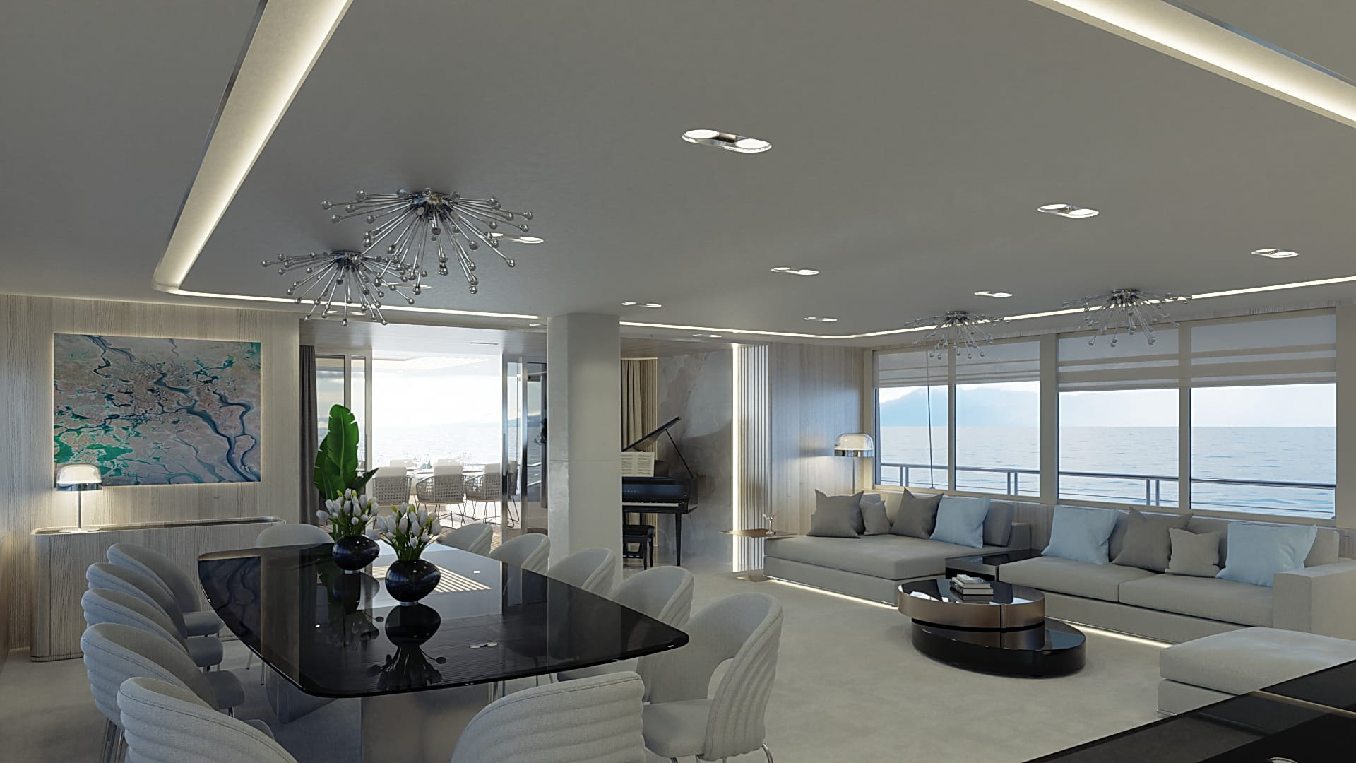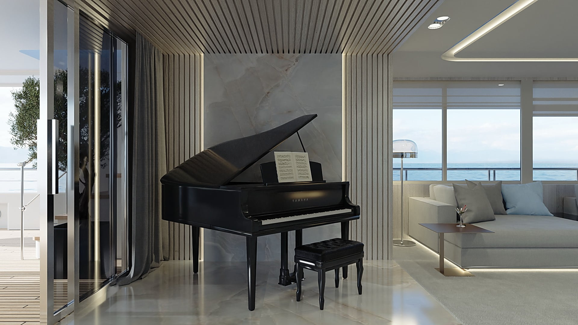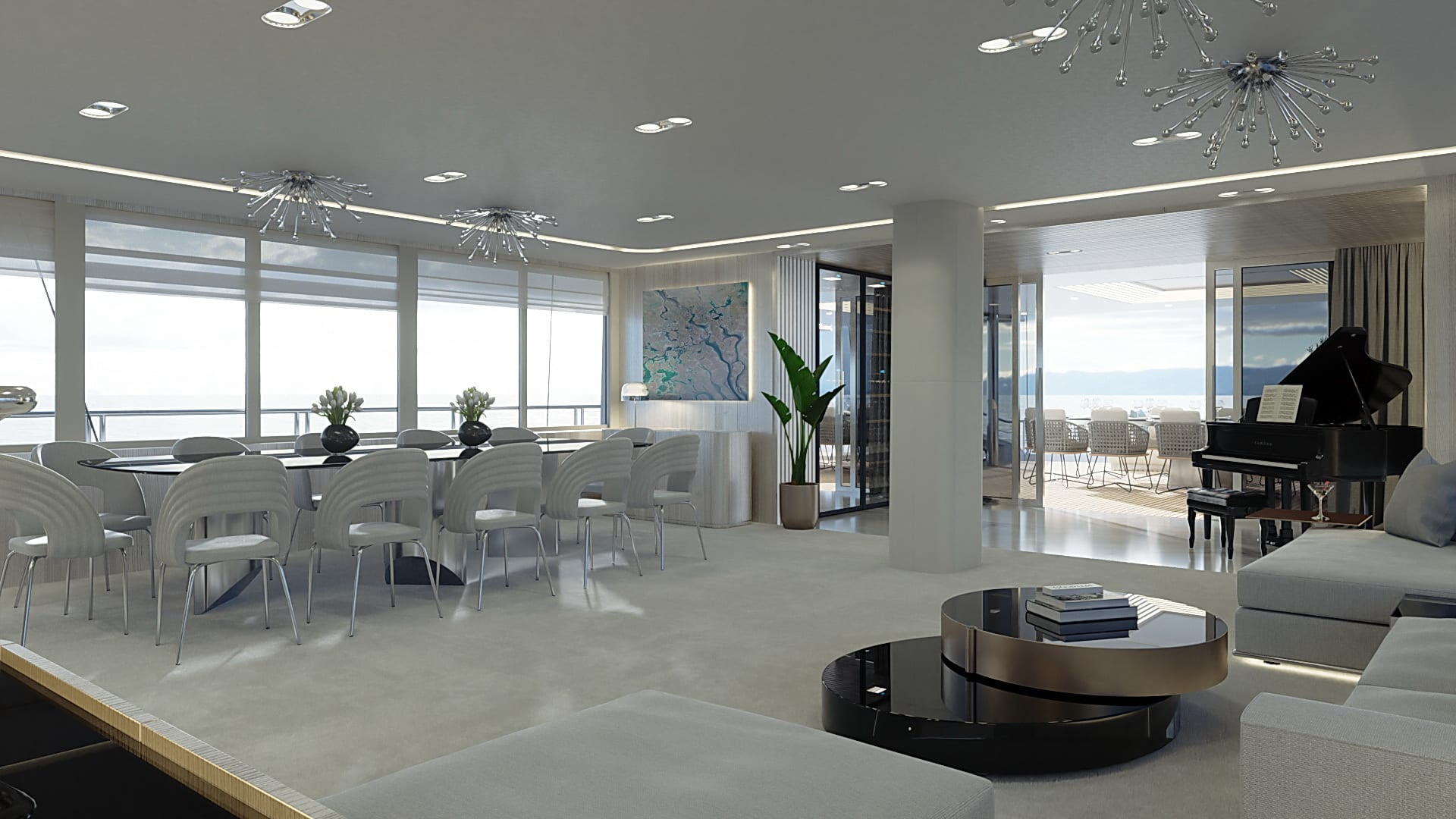 Onboard comfort reaches new heights with amenities like a grand piano, creating an ambiance of sophistication. The deck jacuzzi invites you to unwind with a glass of champagne, while underwater lights add a touch of spectacle after dark. Stay connected with Wi-Fi, and enjoy climate-controlled comfort with air conditioning on this radez luxury charter.