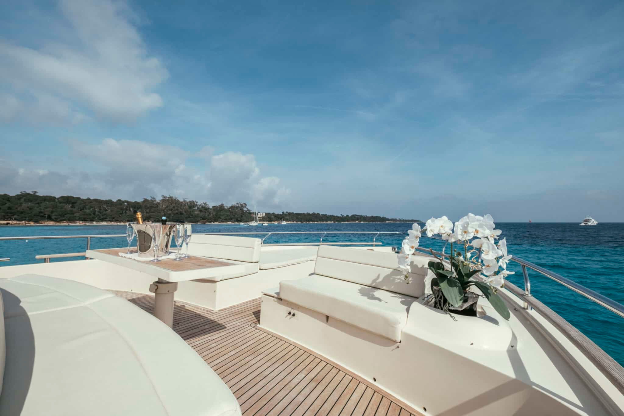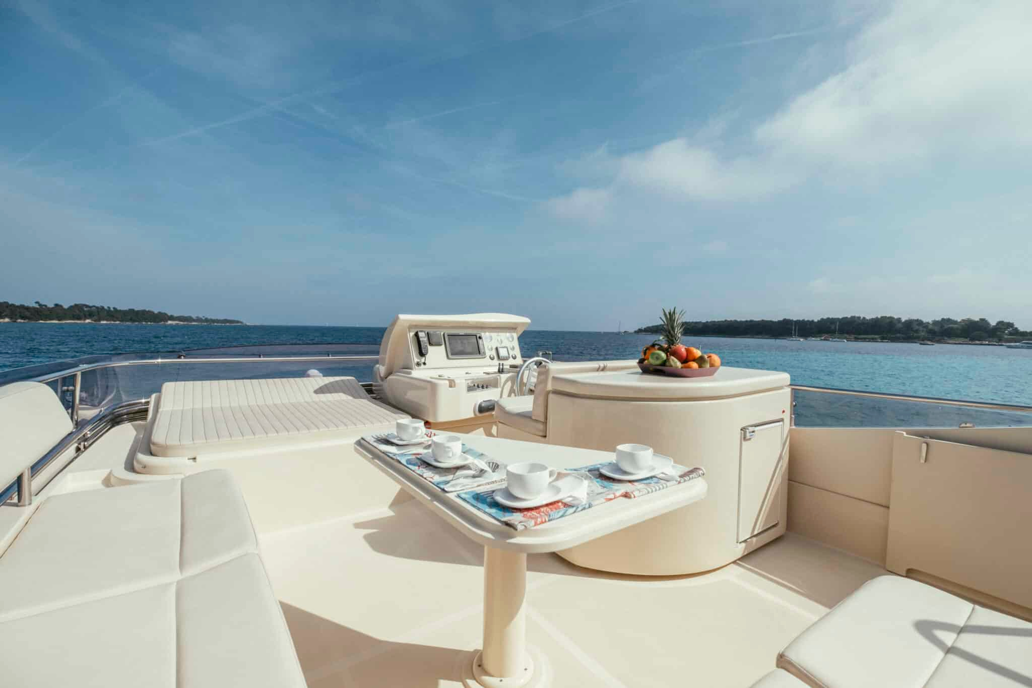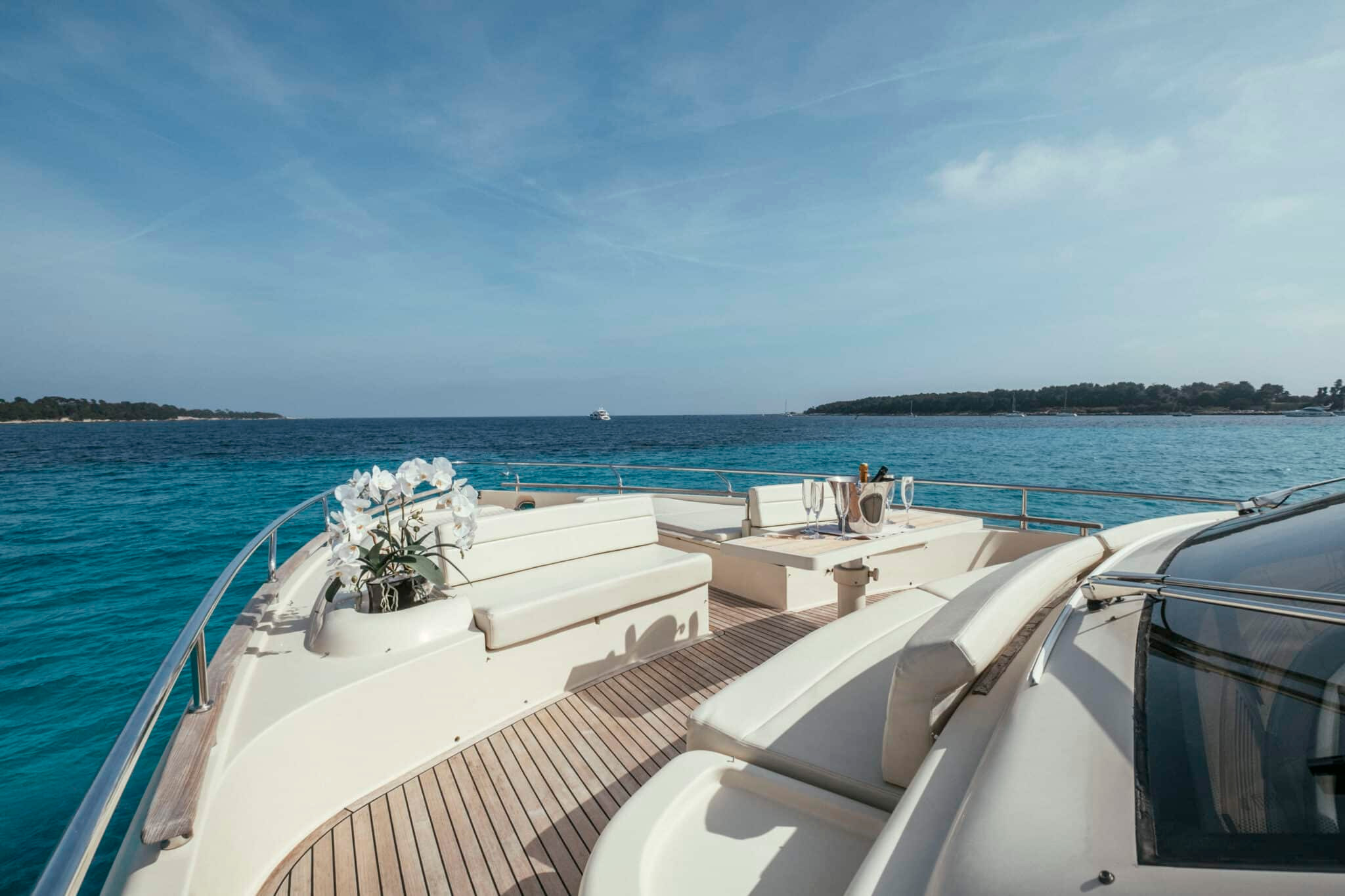 Looking to rent a Ferretti in France? TO ESCAPE is the epitome of luxury and style. A Ferretti Altura 690 that seamlessly combines both elements to provide an exceptional yachting experience. The yacht’s capacious and lavish interior is fully equipped with amenities that outshine most yachts of its size. TO ESCAPE is located in the magnificent waters of the Côte d’Azur. She is the perfect choice for small groups eager to explore the French Riviera’s stunning beauty. The yacht offers an unforgettable and exclusive experience, making it the perfect platform to uncover the wonders of the Mediterranean.