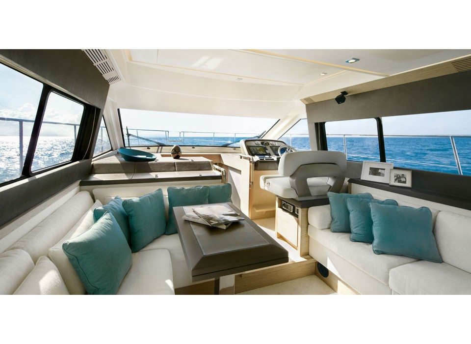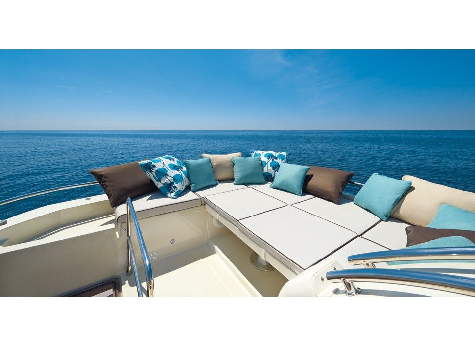 The Monte Carlo is one of the rare yachts of this size that boasts a flybridge. Relax on the seating on thefly bridge with a drink or bite for the ultimate small yacht experience. Exterior space on this motor boat is incredibly generous, with sun-lounging pads forward adding to the great space for enjoying the gorgeous weather.
