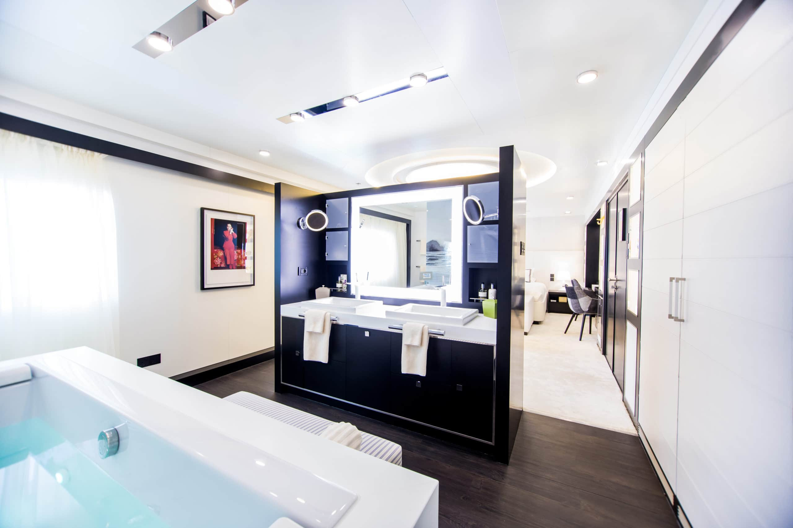 Her 35 onboard crew are available to cater to your every need. The team also features three on-board chefs (who provide the most superb culinary experience), two full time SPA therapists and a personal trainer.
