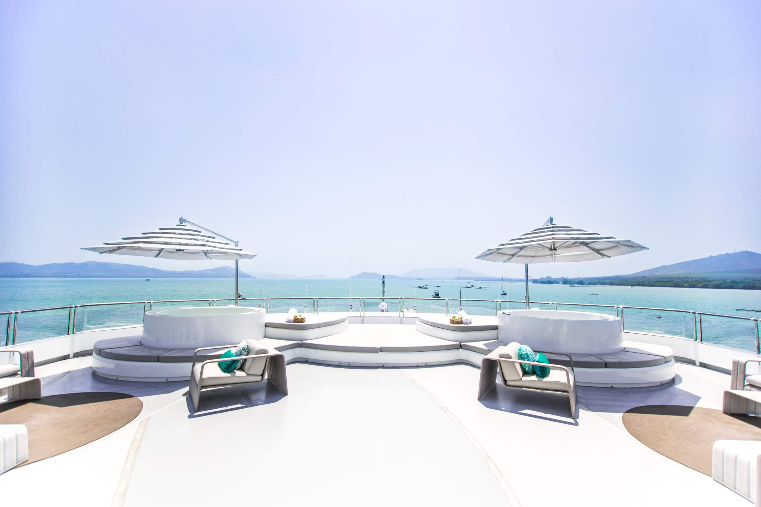 Her 16 cabins sleep up to 32 guests. They comprise of 2 master suites, 7 VIP staterooms, 3 double cabins and 4 double/twin cabins. Her modern styling, gorgeous furnishings and lavish seating feature throughout create an elegant and comfortable atmosphere. Her stand out function rooms include the dining room, karaoke lounge and office. This yacht also features on-board air conditioning and WiFi connection, which only add to her guests’ comfort.