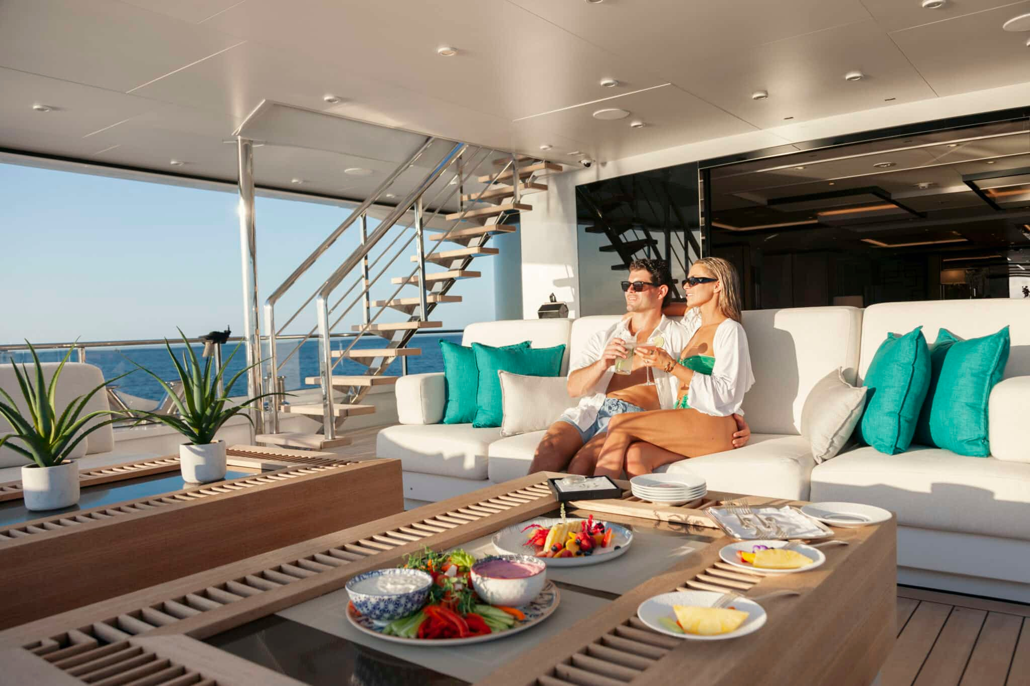 Indulge in the lavish staterooms, from plush bedding and fine linens to state-of-the-art entertainment systems and en-suite bathrooms adorned with marble finishes. Whether you’re unwinding after a day of exploration or preparing for a night of festivities, you’ll find everything you need for a restful and rejuvenating stay aboard a Samurai luxury yacht charter.