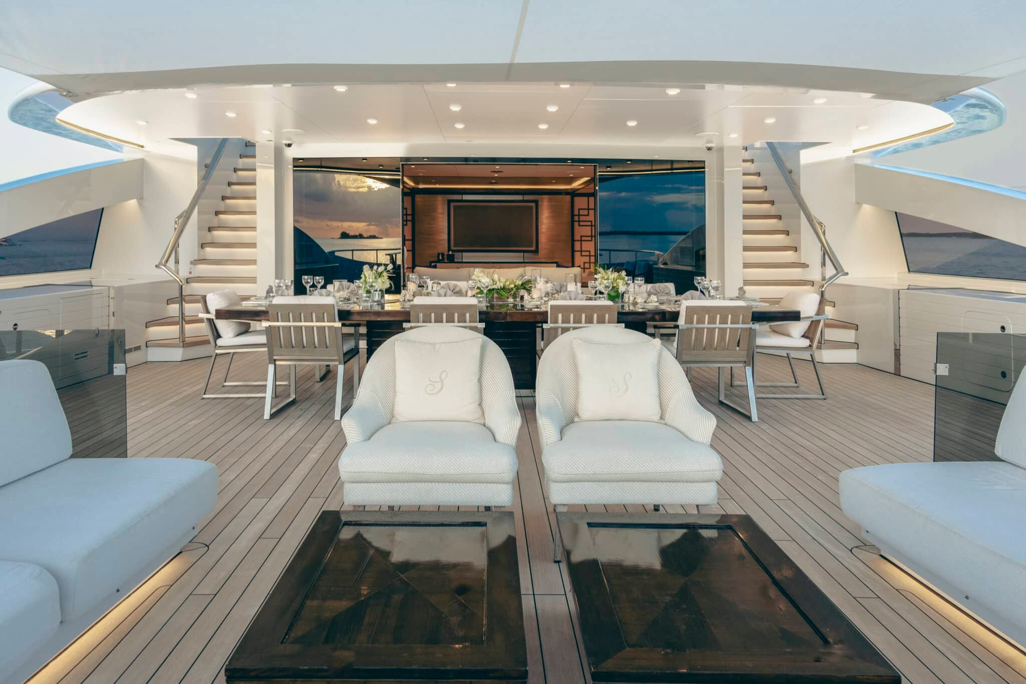Samurai offers a world of indulgence. The yacht features accommodations for up to 12 guests. in 6 suites comprising a master suite, one VIP cabin, three double cabins and one cabin that can operate as twin or double. There are 6 beds in total, including 2 king, 3 queen and 1 double. Also, she is also capable of carrying up to 15 crew onboard to ensure a relaxed luxury yacht charter experience.