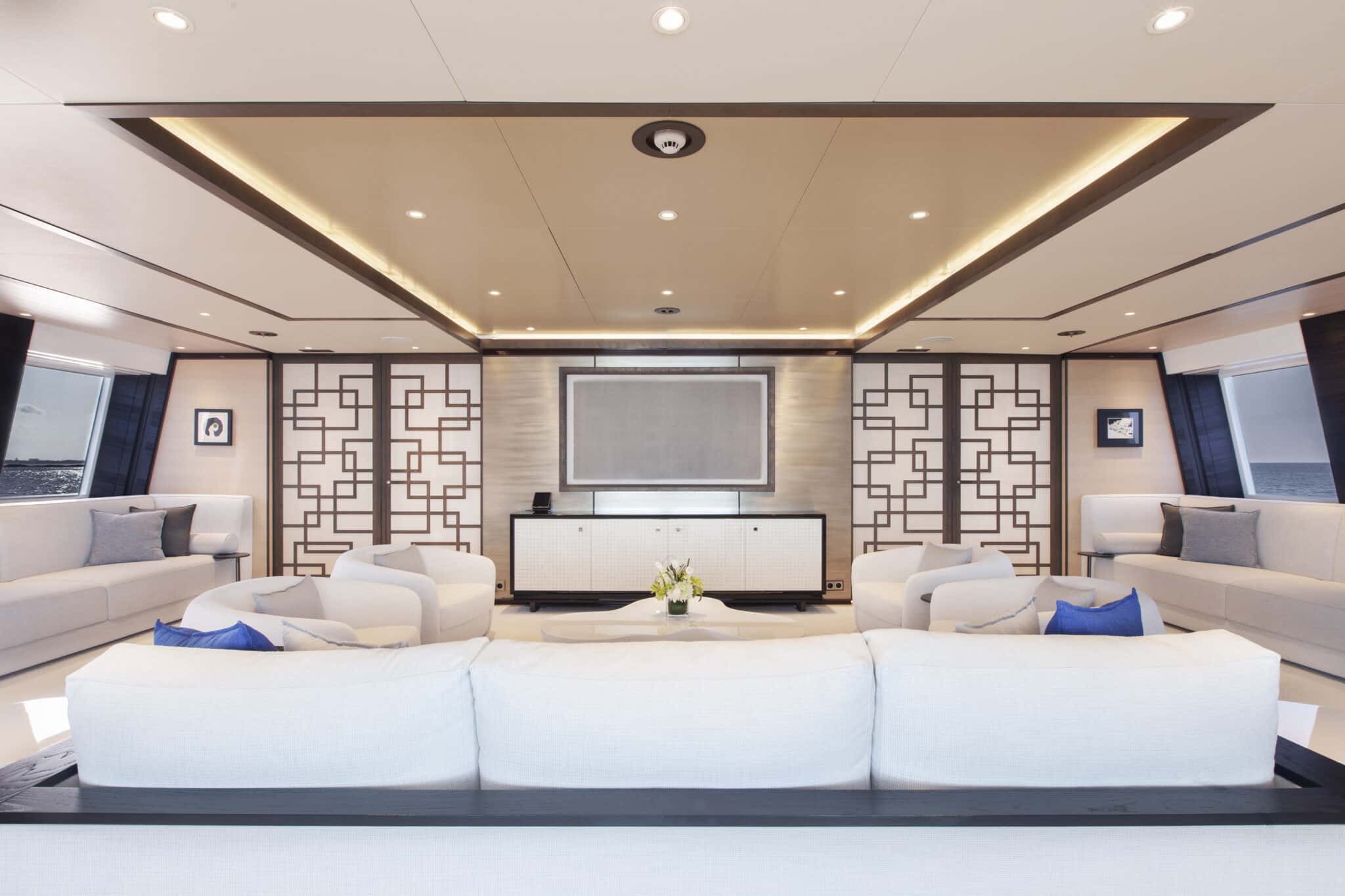 Samurai offers a world of indulgence. The yacht features accommodations for up to 12 guests. in 6 suites comprising a master suite, one VIP cabin, three double cabins and one cabin that can operate as twin or double. There are 6 beds in total, including 2 king, 3 queen and 1 double. Also, she is also capable of carrying up to 15 crew onboard to ensure a relaxed luxury yacht charter experience.