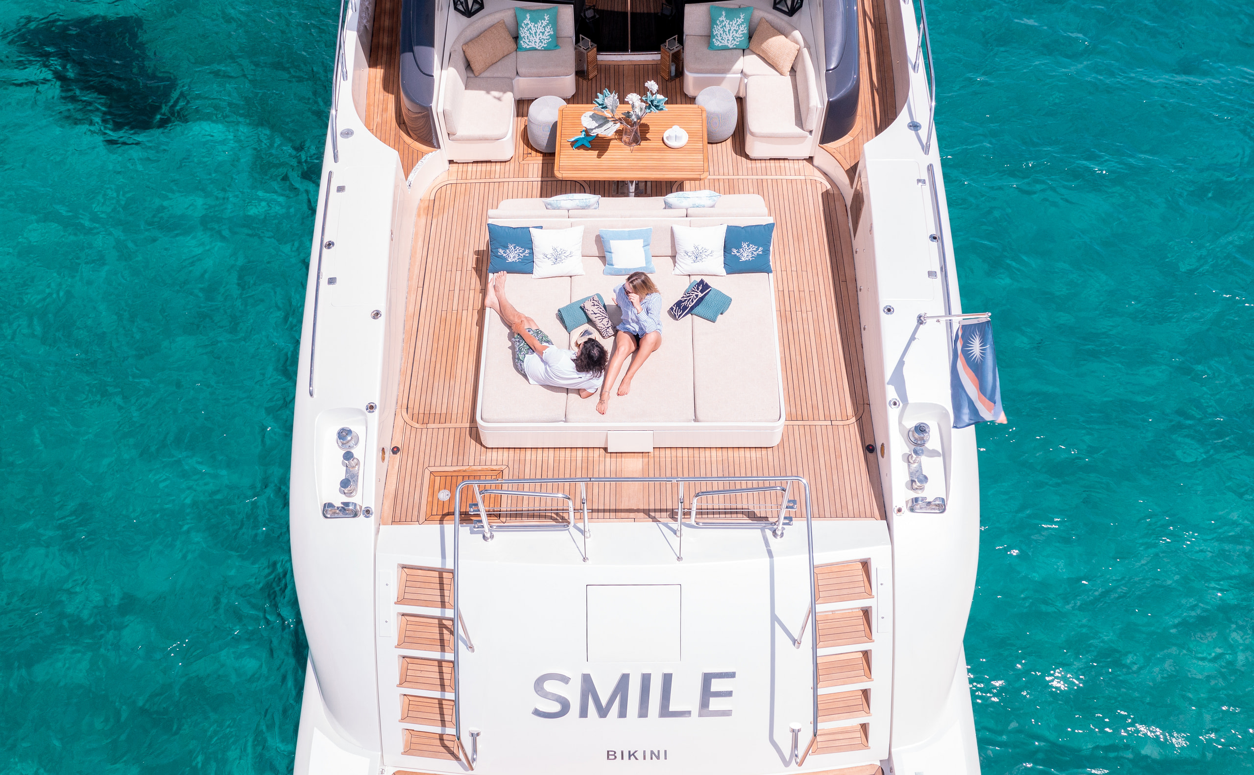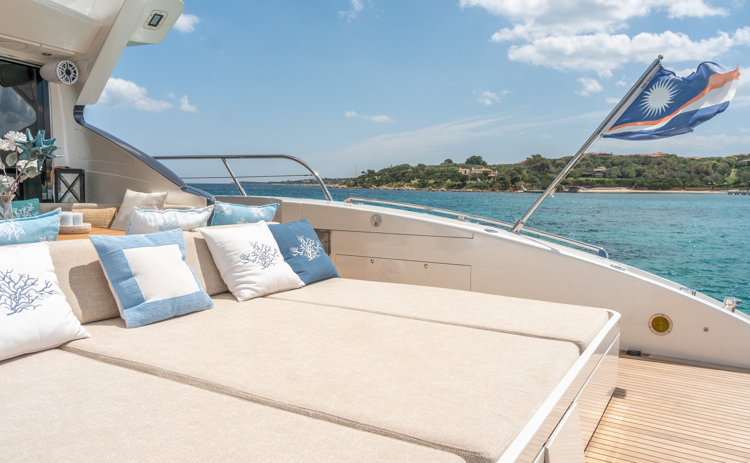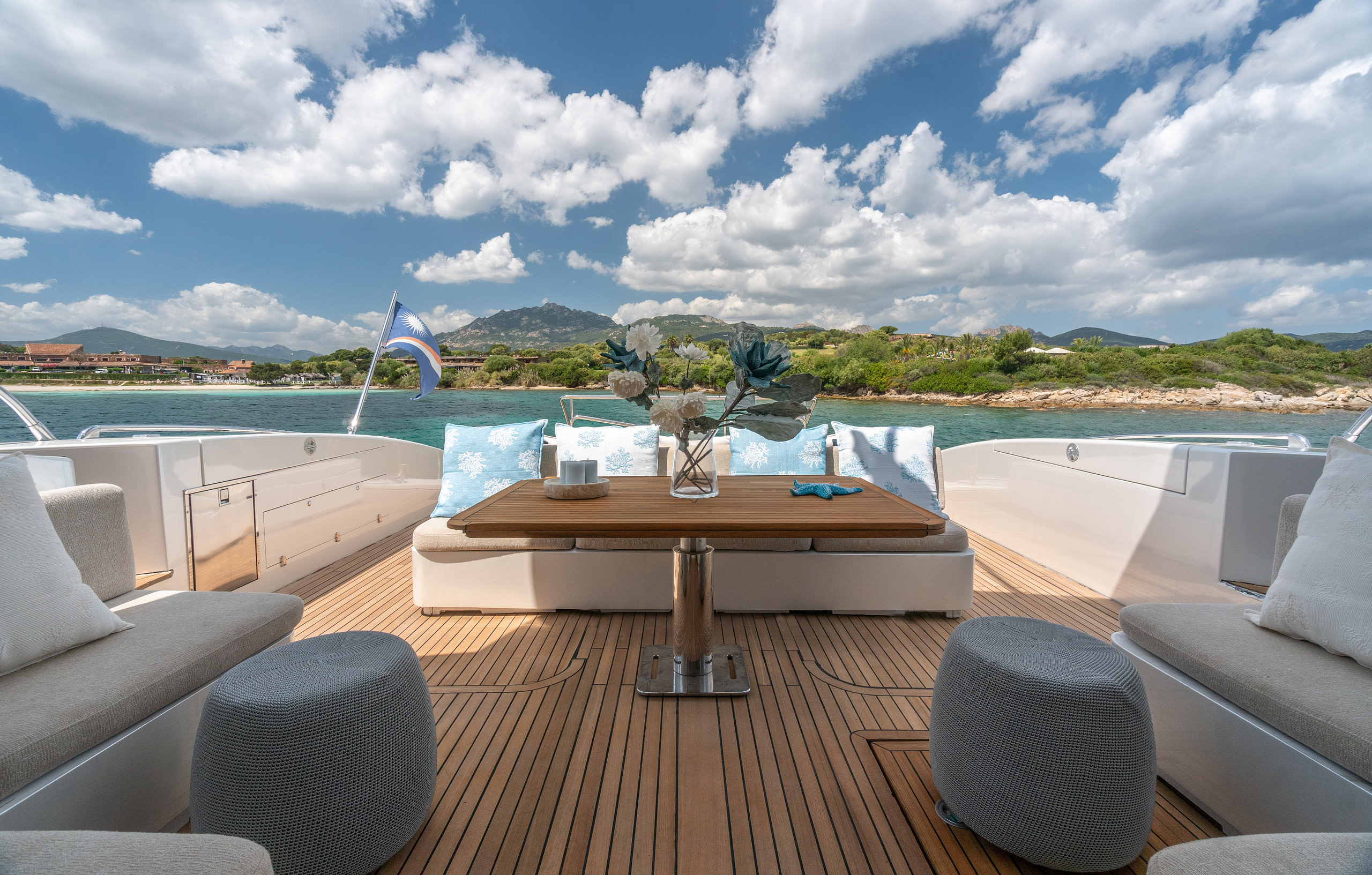 SMILE offers the perfect blend of high performance, luxury, and comfort, making it an exceptional choice for an unforgettable Mediterranean yacht charter experience. Entirely refit in 2024, this sleek yacht feels brand new. SMILE accommodates up to 12 guests in a well-appointed layout. This SMILE yacht charter features a master suite, two double cabins, and a twin cabin, complemented by a dedicated crew of four for seamless service. Designed for both adventure and comfort, this SMILE yacht charter boasts top-tier amenities, including an exciting selection of water toys such as towable inflatables and a 2022 SEABOB. SMILE is perfect for Corsica and Sardinia yacht charters. She combines impressive speed with efficiency with a cruising speed of 24 knots and a maximum speed of 39 knots. Furthermore, SMILE has a year-round berth in the beautiful Cala dei Sardi. Guests can explore stunning coastal destinations, particularly on a Sardinia yacht charter, with ease. This is, without a doubt, a yacht that will guarantee to make you ‘smile’!