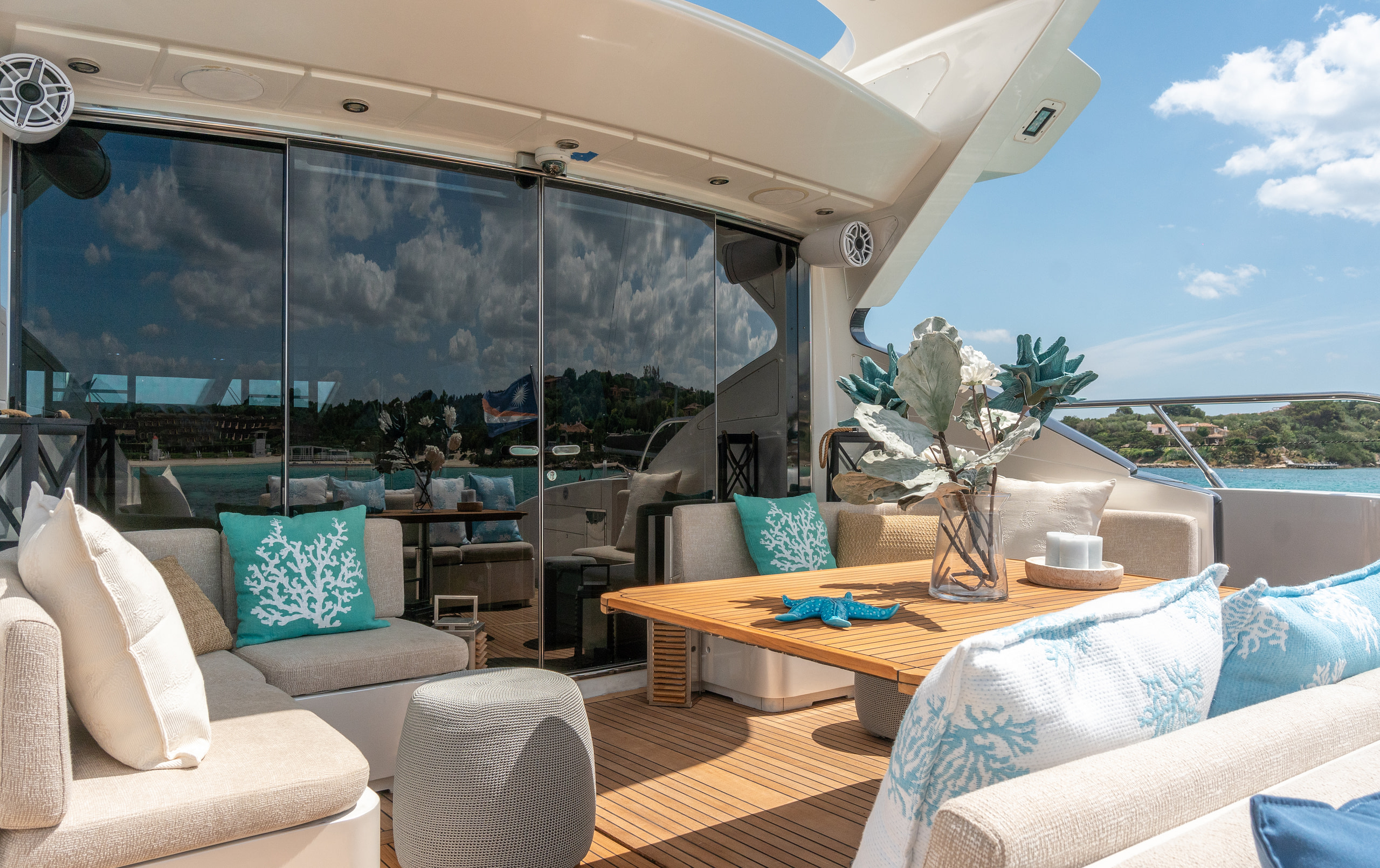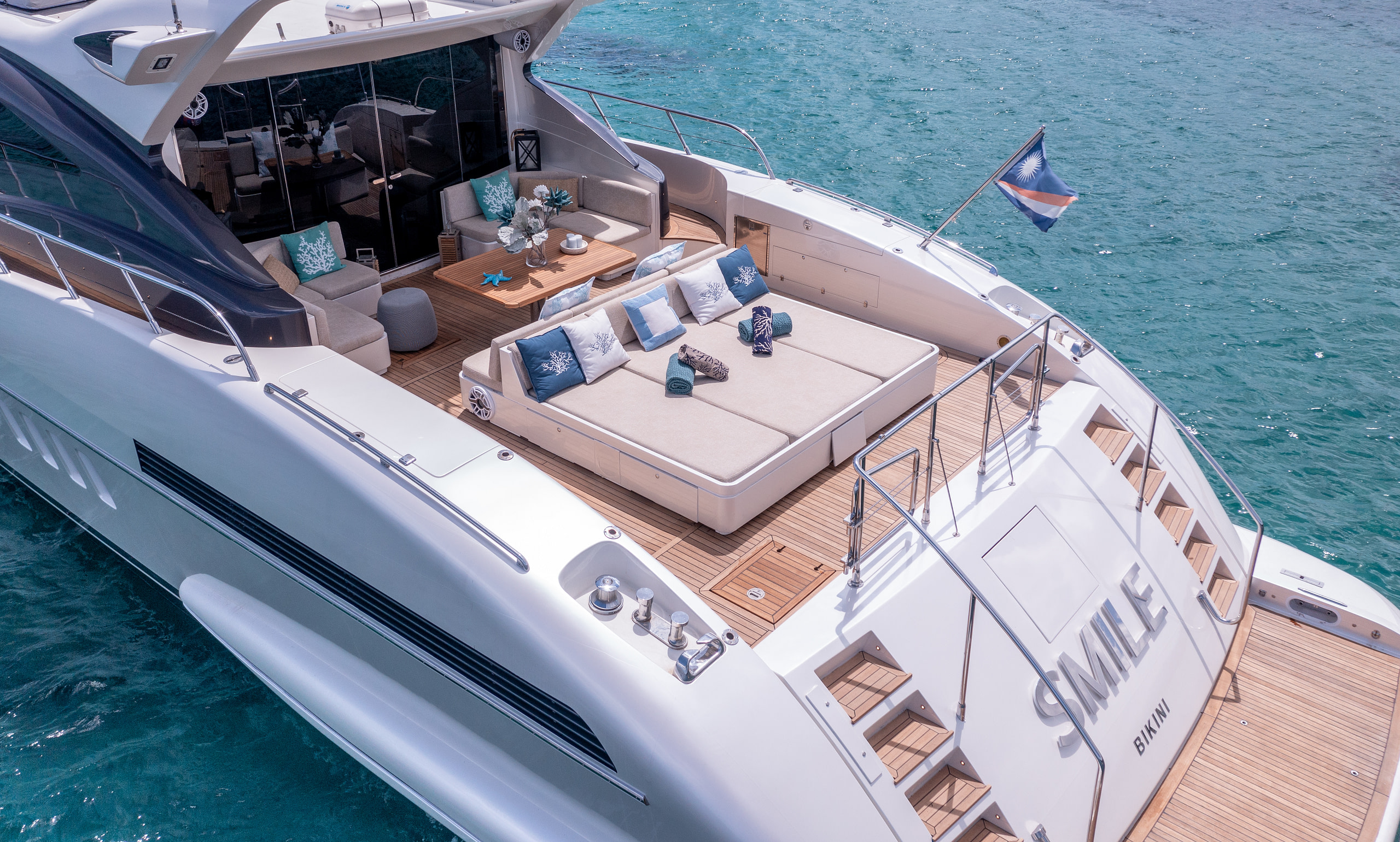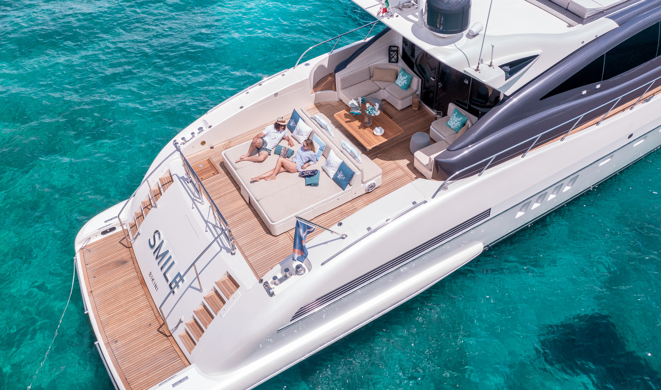 SMILE offers the perfect blend of high performance, luxury, and comfort, making it an exceptional choice for an unforgettable Mediterranean yacht charter experience. Entirely refit in 2024, this sleek yacht feels brand new. SMILE accommodates up to 12 guests in a well-appointed layout. This SMILE yacht charter features a master suite, two double cabins, and a twin cabin, complemented by a dedicated crew of four for seamless service. Designed for both adventure and comfort, this SMILE yacht charter boasts top-tier amenities, including an exciting selection of water toys such as towable inflatables and a 2022 SEABOB. SMILE is perfect for Corsica and Sardinia yacht charters. She combines impressive speed with efficiency with a cruising speed of 24 knots and a maximum speed of 39 knots. Furthermore, SMILE has a year-round berth in the beautiful Cala dei Sardi. Guests can explore stunning coastal destinations, particularly on a Sardinia yacht charter, with ease. This is, without a doubt, a yacht that will guarantee to make you ‘smile’!