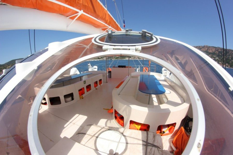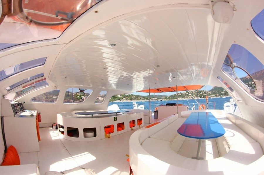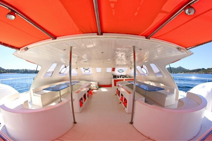 Maxi catamarans benefit from dual-hull design and next generation engineering, resulting in an incredibly stable and tranquil ride. Fewer cocktails spilled and minimal chance of sea-sickness make her a real crowd-pleaser. Her spacious, 442 meter squared deck features a wonderfully modern design, with pearly white seating surrounding large tables. The configuration is brilliantly social, and the space on-deck is ideal for dancing and chatting with friends, complete with a top of the range entertainment system and a bar to order delectable cocktails served by the experienced crew of 2. This well equipped and modern catamaran really is a fantastic event venue. For family fun, watertoys can be found on-board including kayaks and snorkelling equipment, along with ample space for savouring the sun. There is also a generously sized interior, boasting 2 bathrooms and 2 cabins. If you are looking for catamaran charter French Riviera, and you want to throw an event to remember, then Solana is the ideal yacht for you.