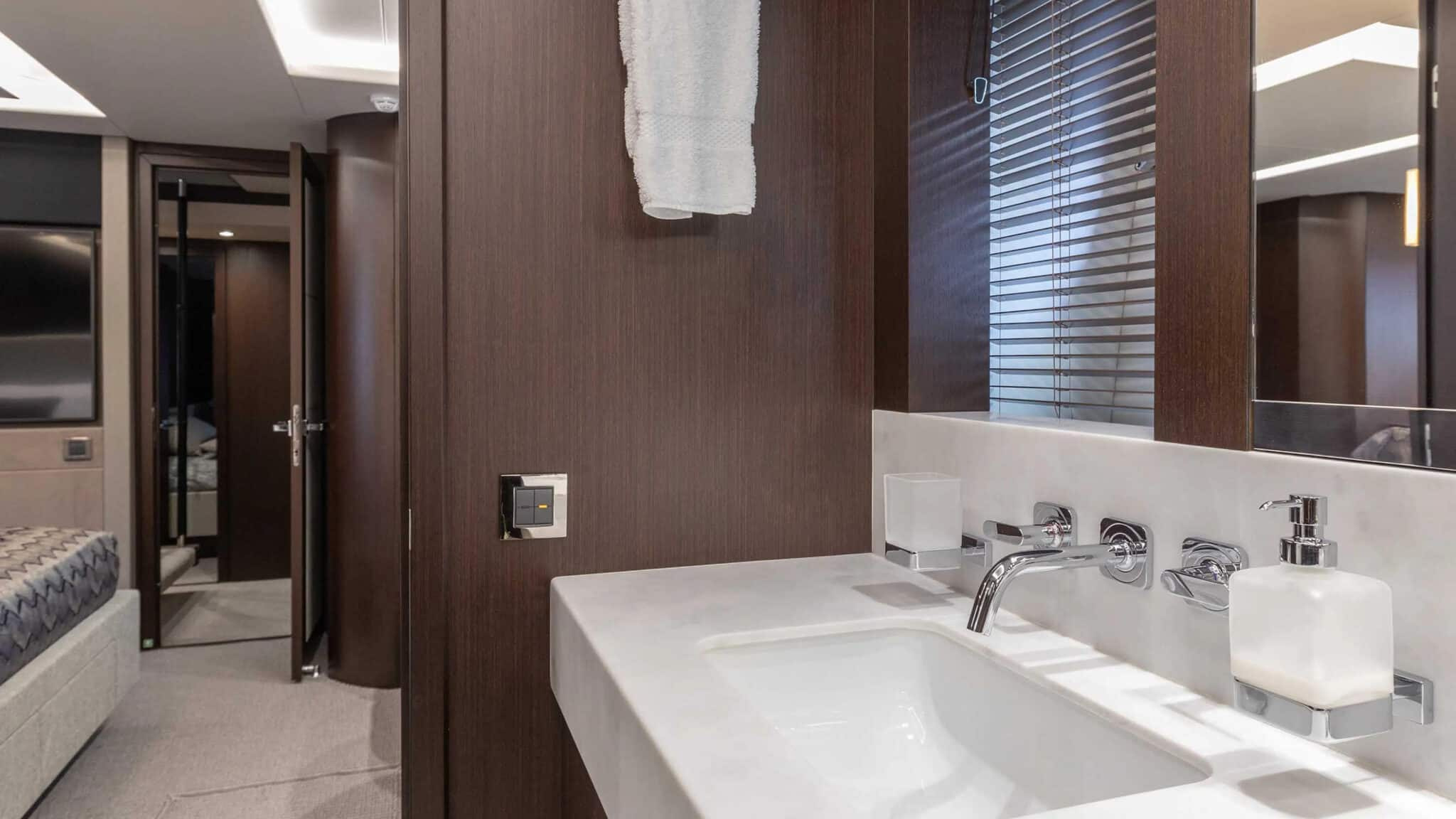 Step aboard ‘Insomnia’ and enter a world of indulgence. With flexible accommodation for up to 8 guests across 4 cabins, including a master suite, VIP cabin, and two versatile cabins that can function as twins or doubles, every corner of this yacht exudes comfort and sophistication. The 2020 build boasts bespoke fittings and interior styling by Sunseeker, ensuring a perfect blend of style and functionality on this Sunseeker luxury yacht charter.