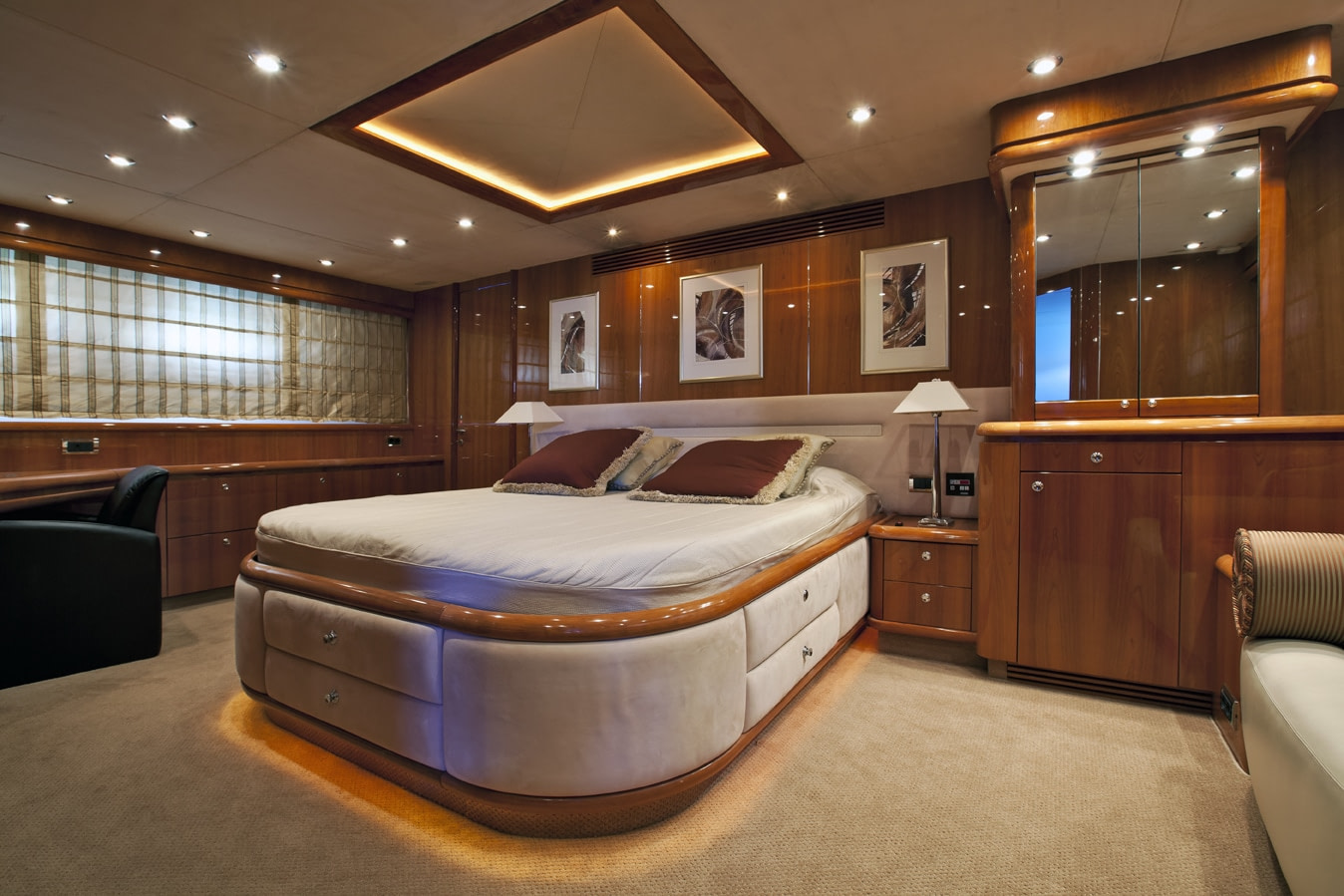 Her performance is impressive thanks to her 2 MTU CV 1846 engines, and her shallow draft (1.8m) lends the yacht to coastline cruising.