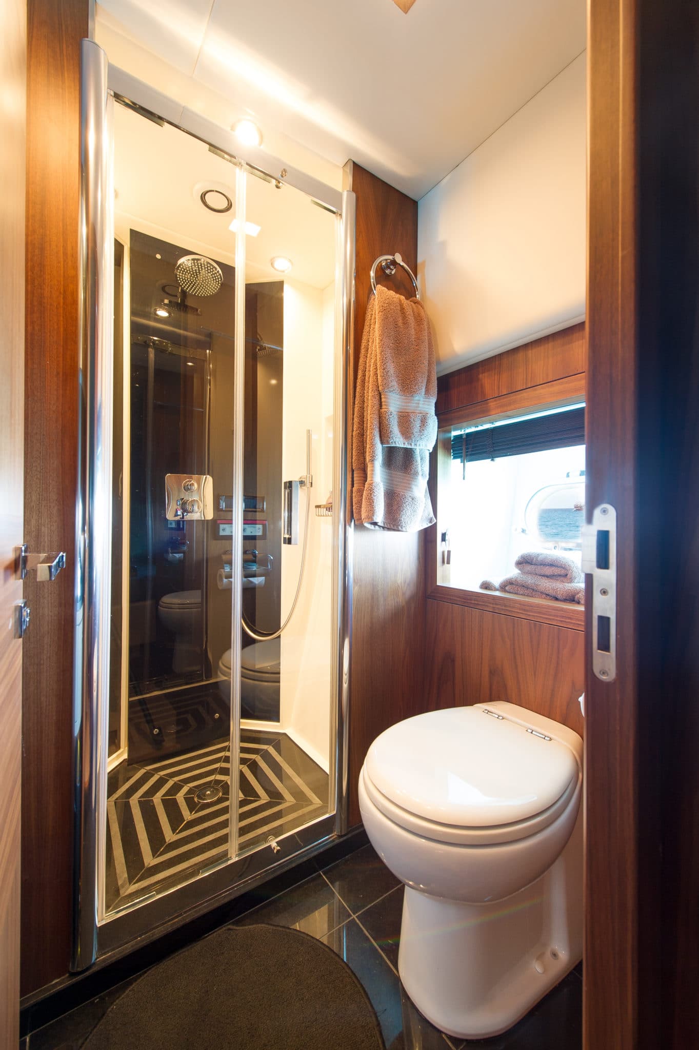 Alvium has a simply gorgeous interior. The finest materials have been used throughout. The combination of hardwoods and neutral upholstery make for a relaxing and welcoming space. The saloon is spacious and comfortable. Large windows make the room very bright. To open up the space, make use of the sliding hardtop. This unique feature creates an appealing atmosphere of freedom.