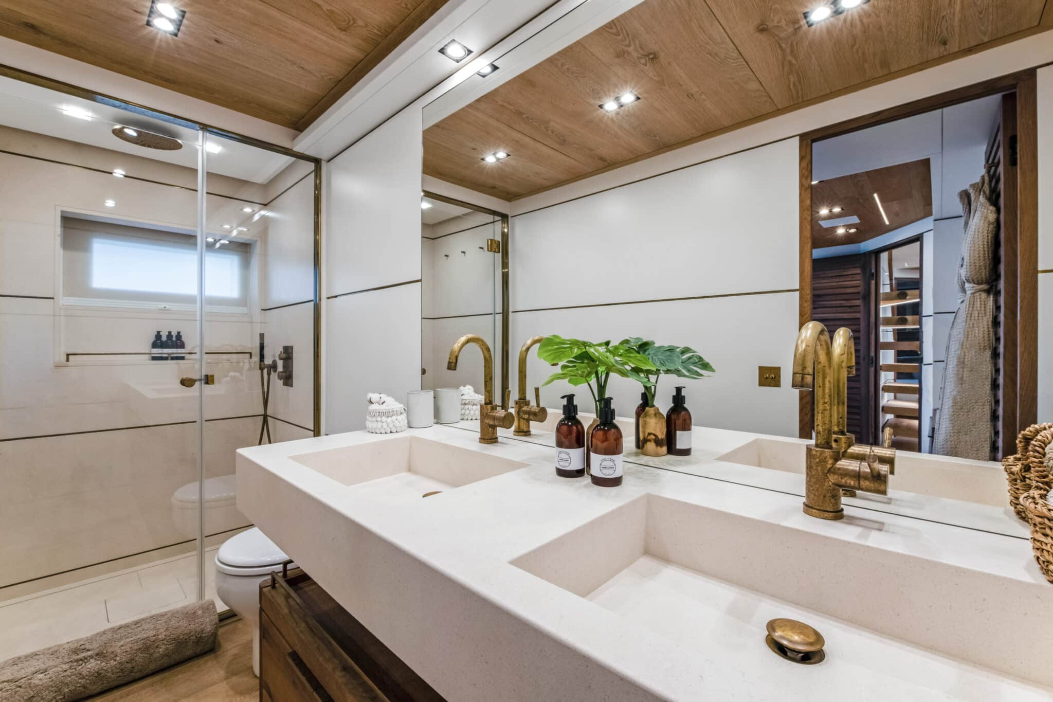 Accommodating 8 guests in 5 suites, which include three double cabins and two convertible twin/double cabins, Sassa La Mare ensures your journey is not just a voyage but an experience of unrivaled comfort. In addition, the yacht is complemented by a professional crew of 6, dedicated to ensuring every aspect of your charter is met with impeccable service.
