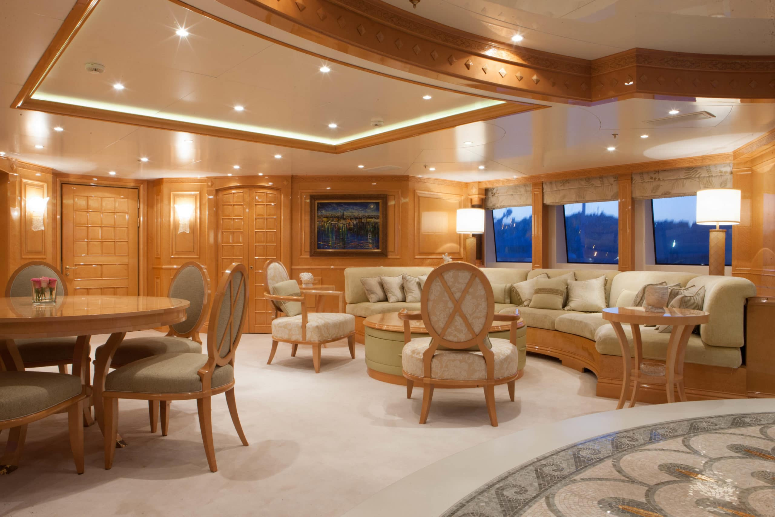 As a result, the yacht is a popular choice for visitors of the Monaco and Abu Dhabi Grand Prix. She is moored in a privileged berth at the Yas Marina, and her three spacious decks, connected by a majestic staircase, mean that up to 150 guests can enjoy the on-track action!