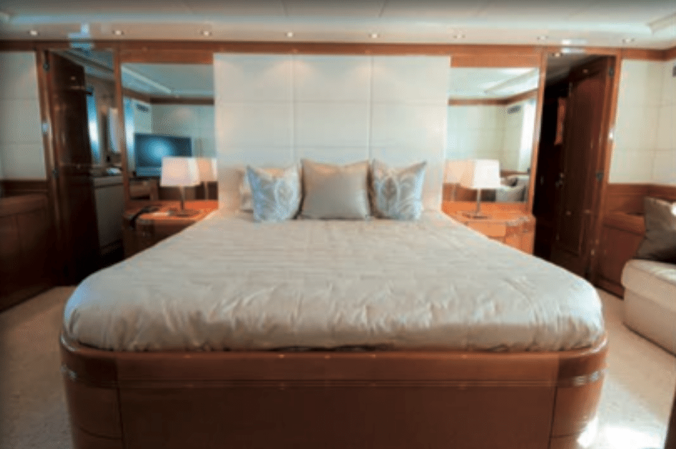 Mach one is a stunning 32m superyacht charter Cannes. Built in 1999 and refitted in 2013, this Mangusta 105 superyacht is simply awesome. With the rare licence to cruise with 16 guests at sea, Mach One is perfect for event superyacht charter Cannes. Entertaining more than 12 guests is a rare ability and for this reason Mach One is extremely popular. The interior of Mach One is spacious and stylish. The salon is vast. Forward is a cockpit salon with bar. An office space adds class and a place to work should the need arise. Satellite TV is found on-board. The galley is spacious and fully equipped. 4 cabins sleep a total of 9 guests on this superyacht charter Cannes. The sleeping configuration is as follows: