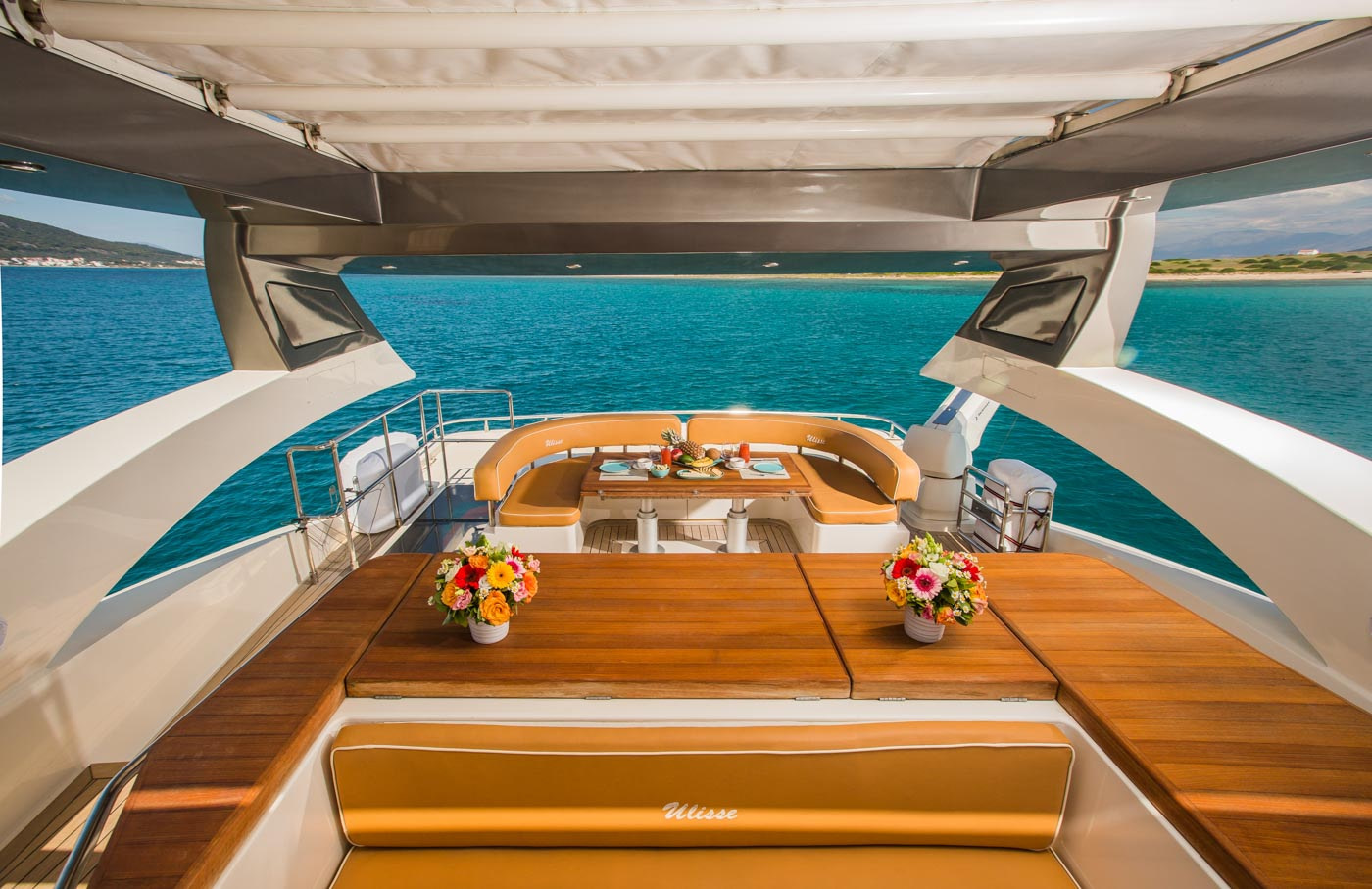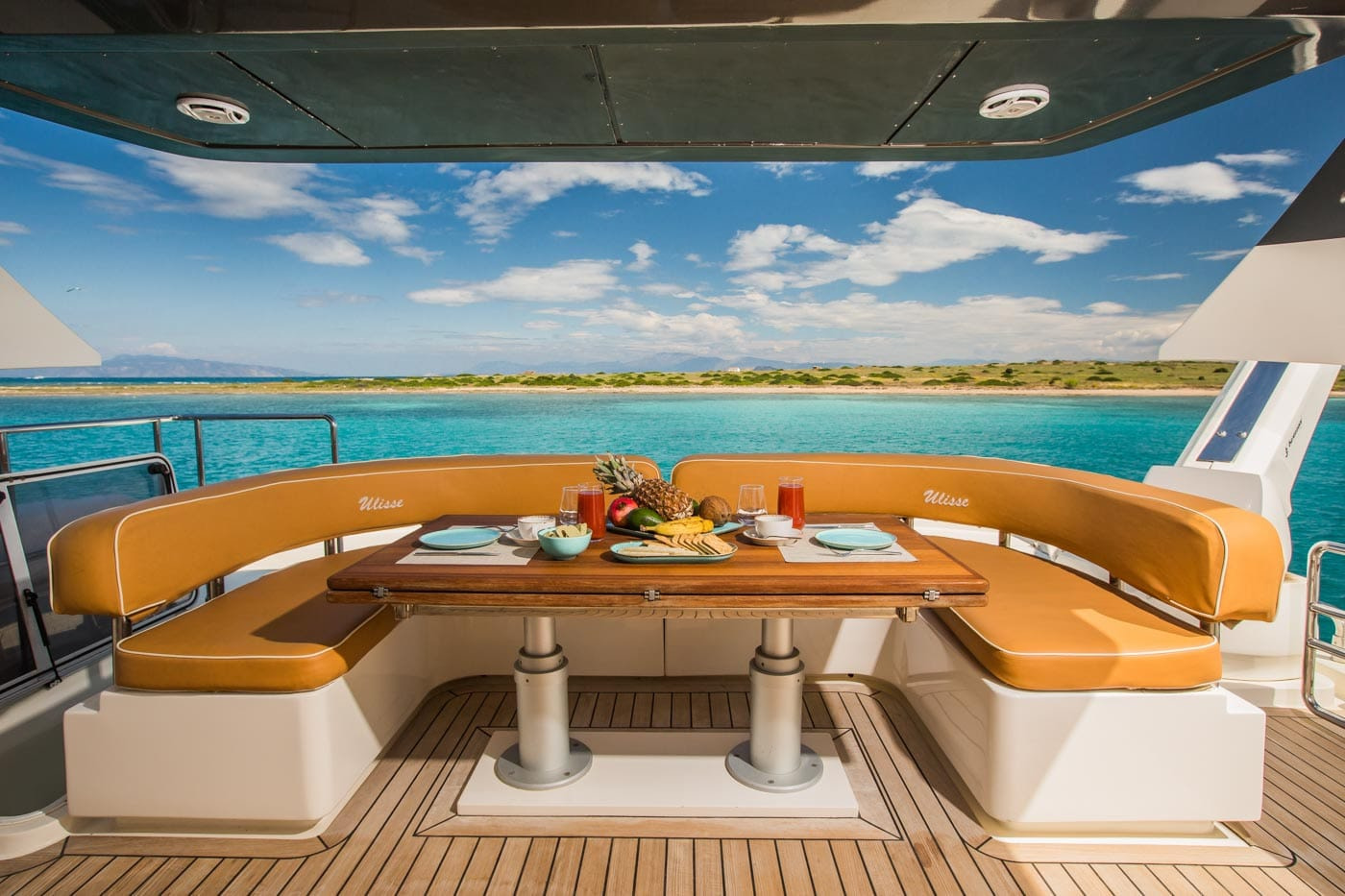 The ageless styling, superb seating and exquisite furnishings feature throughout to create an eloquent and opulent atmosphere for everyone on board. Ulisse is a boat styled for comfort. Suitable to charter for family day outs, romantic cruises or big birthday parties, this yacht ticks all of the boxes.