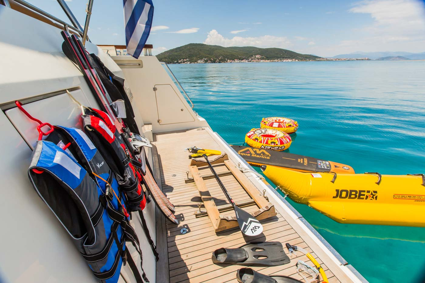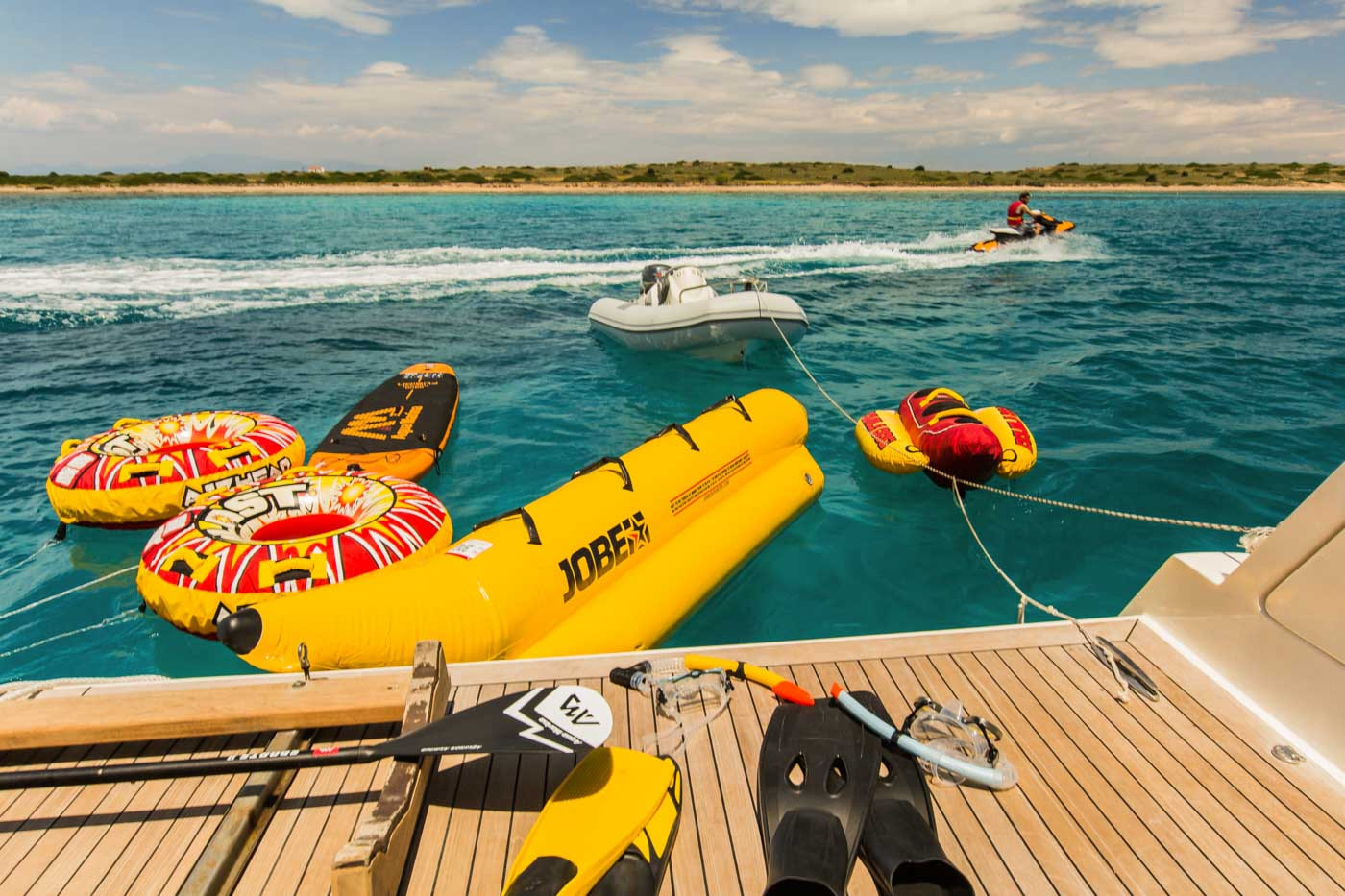 Ulisse possesses notable leisure and entertainment facilities, making her the ideal charter yacht for entertaining family and friends. This yacht is accompanied by a 3 Seat Seadoo Jet-Ski and a 4m Zodiac tender. It also features a range of toys that help one to enjoy the clear blue waters. These toys include tow-able toys which can be used with the tender. The features of air conditioning and WiFi connection on board come as standard. Stabilizers guarantee a smooth ride by counteracting roll caused by waves or wind at sea and at anchor.