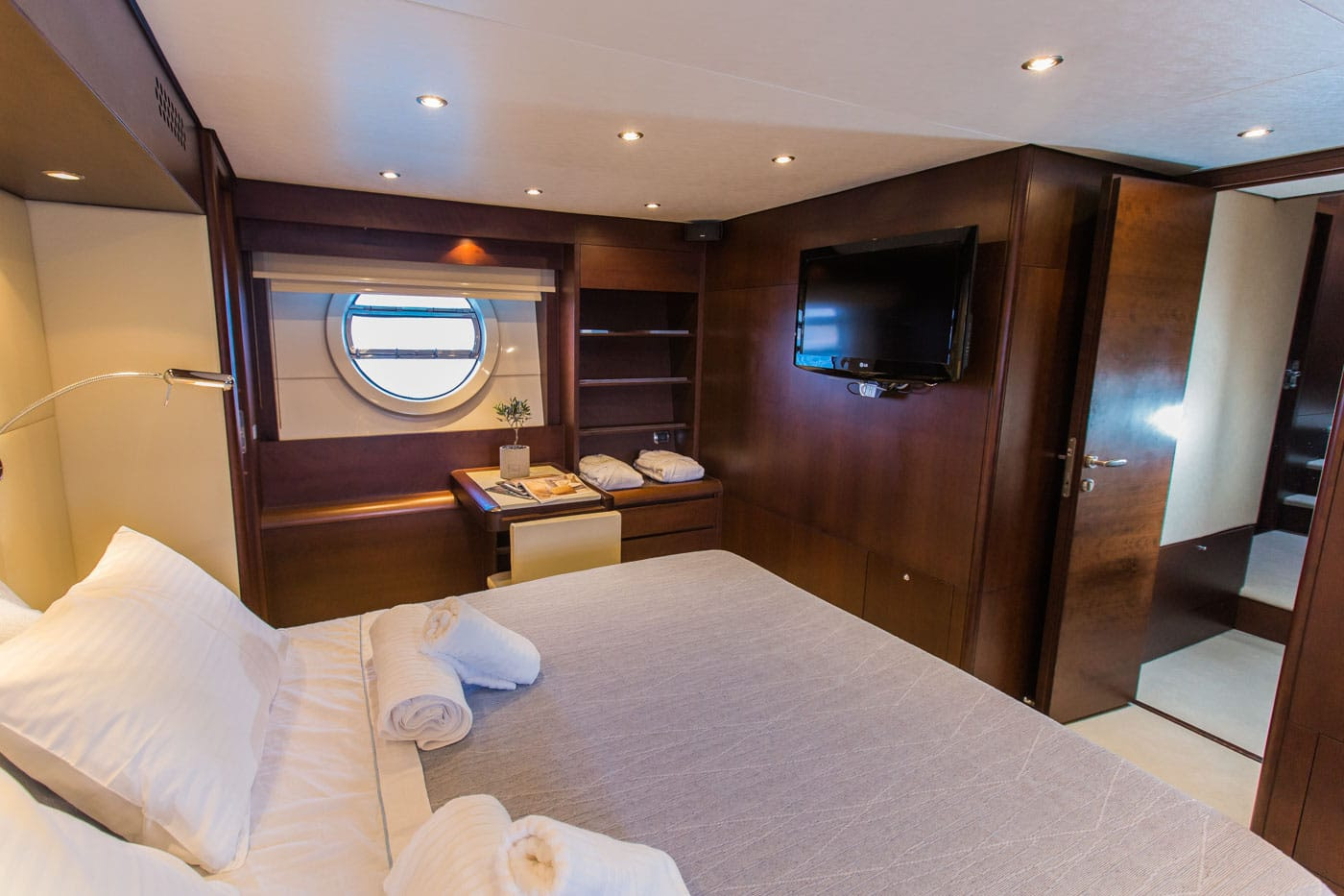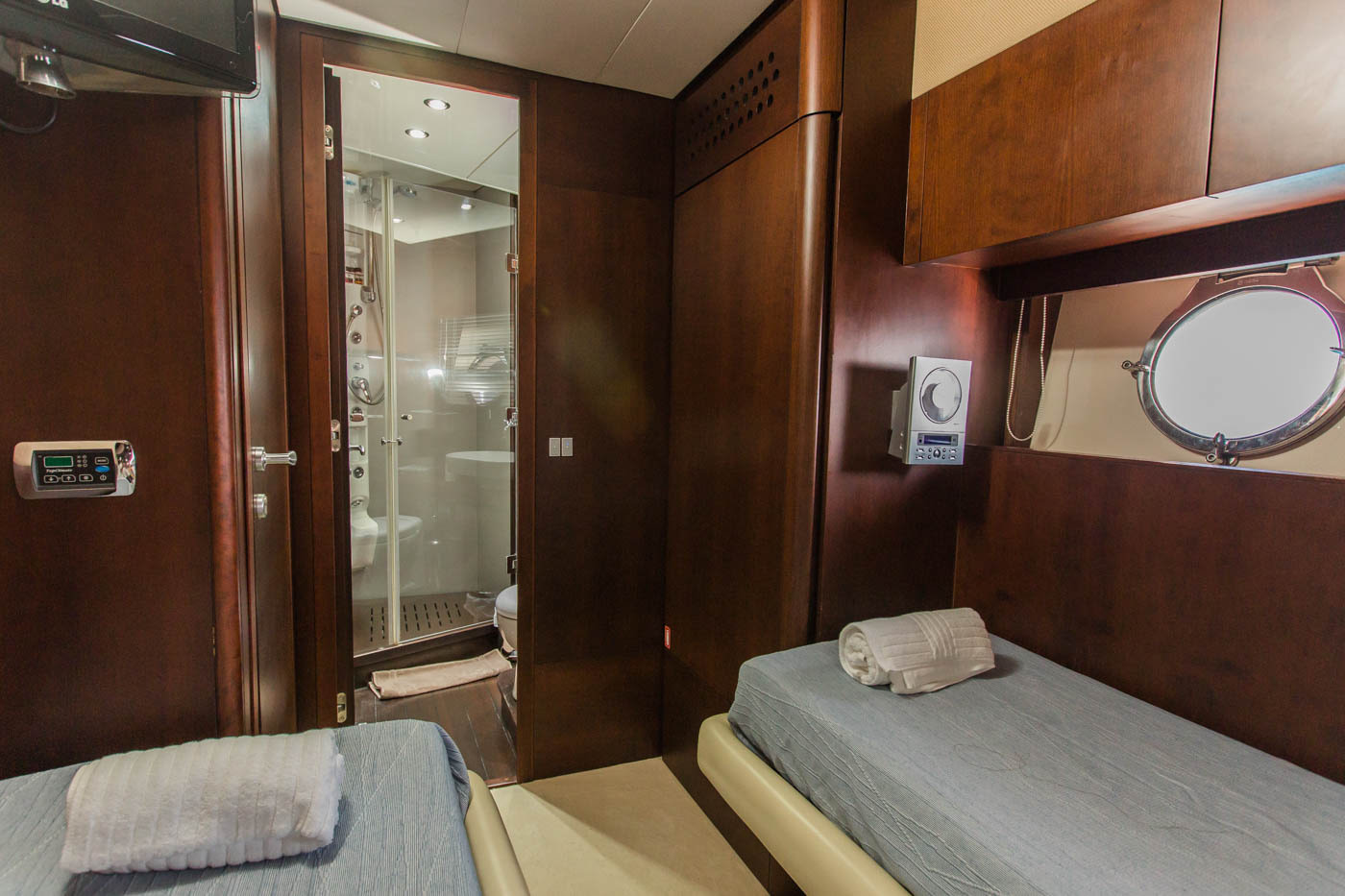 Built by Aicon, Ulisse can accommodate up to 8 overnight guests in 4 cabins, including a master stateroom, 1 double cabin and 2 twin cabins. She is also capable of carrying up to 4 crew members onboard, to ensure that all your needs are catered for while on board.