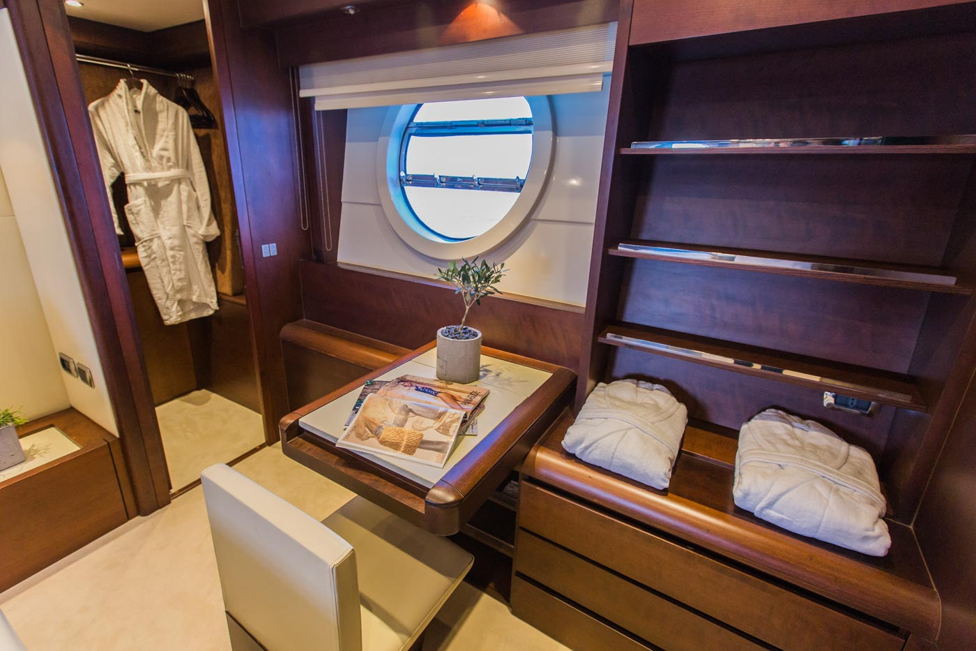 Ulisse yacht spends the majority summer and winter season in Greek waters. However, she also can be chartered anywhere in the Mediterranean. To ensure maximum performance output is enjoyed consistently, this motor yacht features 2 x 1550 HP CAT engines and a generator. She is capable of 31 knots at her top speed, with a cruising speed of 20 knots from her 5,170-litre fuel tanks.