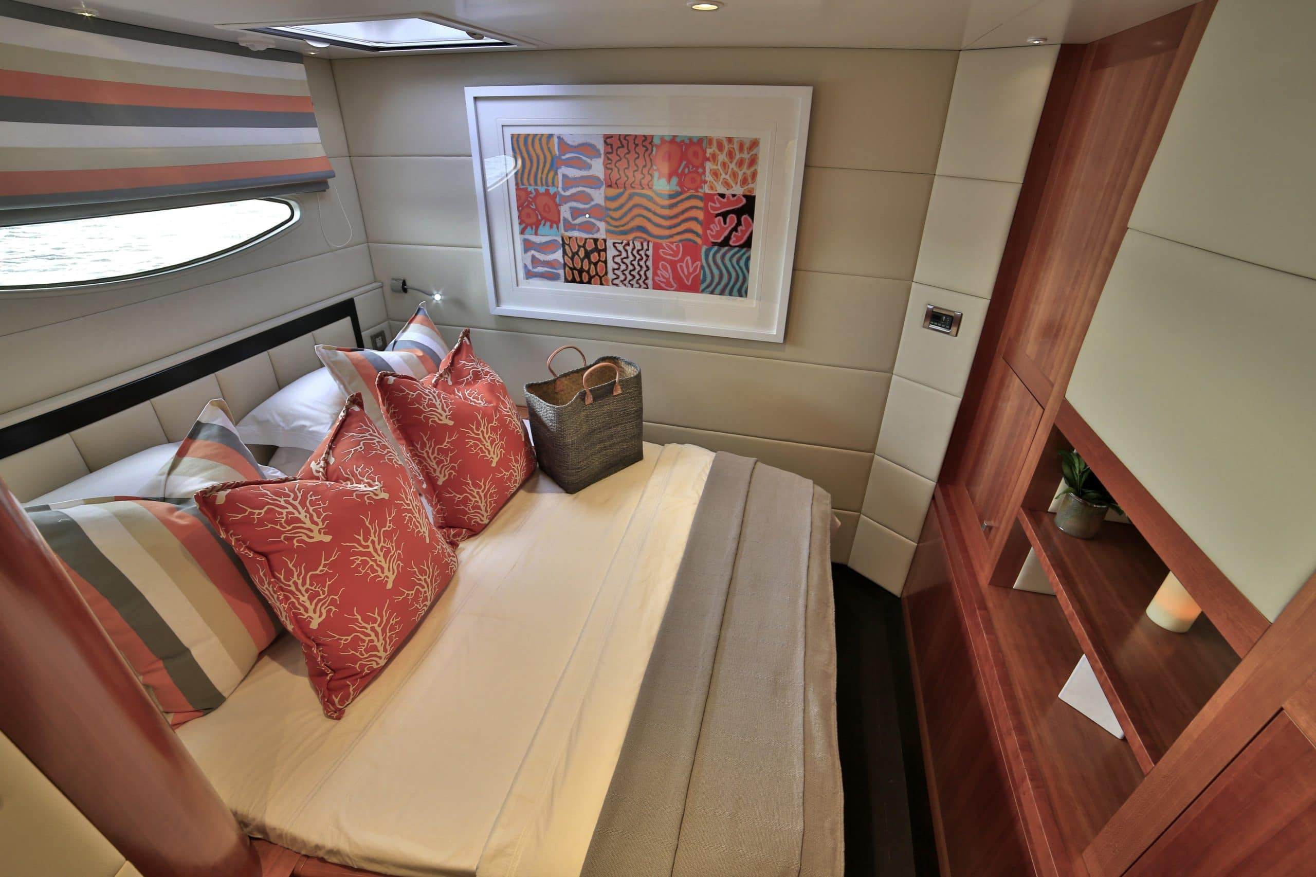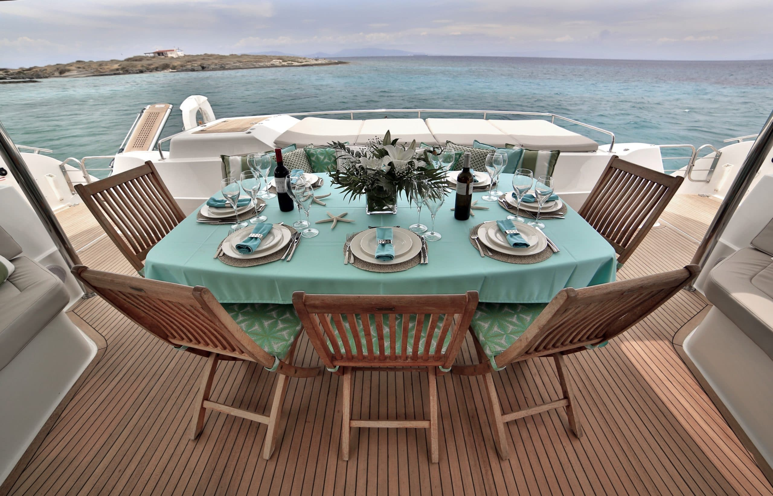 The builder’s Fountaine Pajot call World’s End the best seller in their fleet and for good reason. She wins over all her guests and has a high number of satisfied repeat clients. Her cleverly designed exterior areas give a spacious feel with many different spots for relaxing in and making the most of the East Mediterranean weather. The exterior dining area offers a great space for some al fresco dining so you and your guests can enjoy your carefully prepared meals by her expert crew and take in the beautiful views around you. Or you can lay out on the sofa beds in the cockpit area in the midday heat. More seating and areas to lay out in are found at the rear of the vessel where you can unwind and watch the other guests make the most of the water toys on board. The flybridge seating area offers the perfect spot to gather and watch the sunset at the end of a day well spent on your Catamaran holidays in Greece.