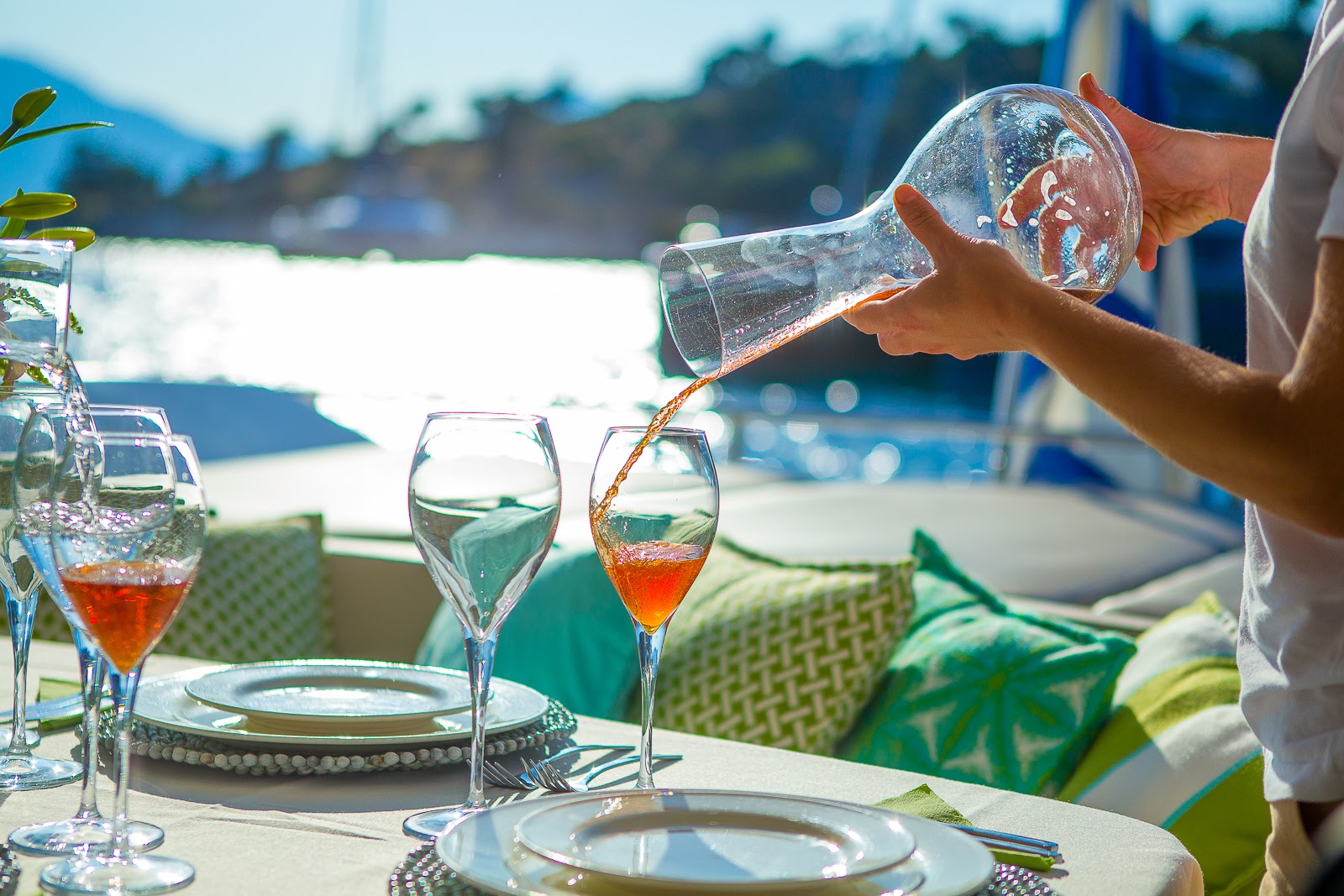 World’s End can have up to 10 guests cruising at a time and can sleep them all comfortably in her 5 luxurious cabins. The cabins consist of one spacious Owner’s Cabin for the head charterers with a King-sized bed, three guest cabins with Queen-sized beds and one twin cabin. Each cabin has its own private ensuite. This beautiful Catamaran went through a total refit in 2016, under the trained eye of interior designer Meg Fasanelli. A modern Beach House décor can be seen throughout the vessel. With sea blue and green colour tones throughout to mirror the crystal-clear water of the Greek seas outside. A warm glossy timber finish adds to the warm and welcoming atmosphere of the boat. The salon has a large comfortable seating and dining area to relax in and watch the large flat screen tv at the end of a day spent relaxing in the sun and playing in the water. Wi-Fi is available throughout the vessel.
