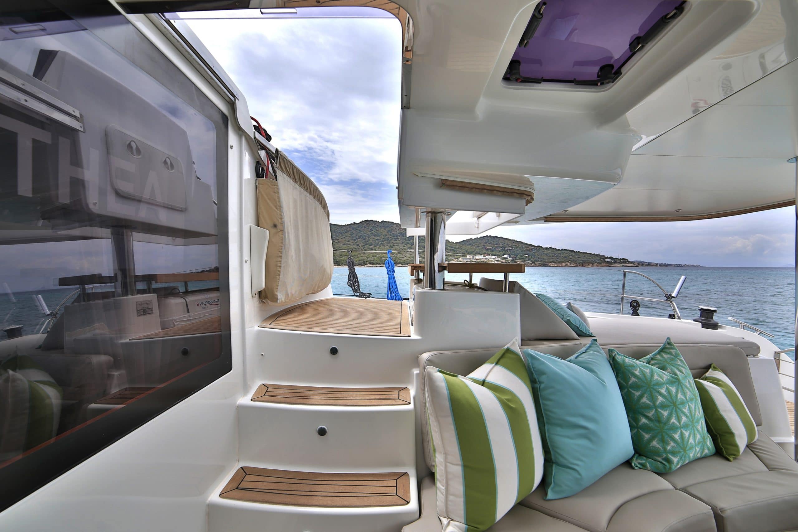 The builder’s Fountaine Pajot call World’s End the best seller in their fleet and for good reason. She wins over all her guests and has a high number of satisfied repeat clients. Her cleverly designed exterior areas give a spacious feel with many different spots for relaxing in and making the most of the East Mediterranean weather. The exterior dining area offers a great space for some al fresco dining so you and your guests can enjoy your carefully prepared meals by her expert crew and take in the beautiful views around you. Or you can lay out on the sofa beds in the cockpit area in the midday heat. More seating and areas to lay out in are found at the rear of the vessel where you can unwind and watch the other guests make the most of the water toys on board. The flybridge seating area offers the perfect spot to gather and watch the sunset at the end of a day well spent on your Catamaran holidays in Greece.