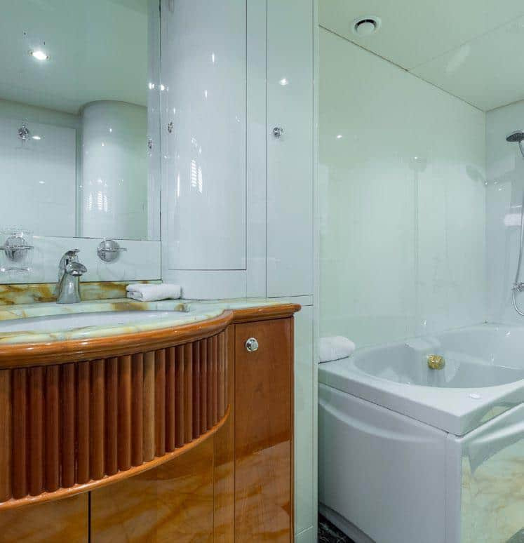 Accama Delta is not just a Cannes yacht rental; it’s a floating oasis powered by 2 x 1800 hp MTU engines and Kva KHOLER generators, promising a smooth and graceful journey. In addition, the yacht comes equipped with an impressive array of water sports, including water skiing, wakeboarding, snorkeling, donuts, paddleboarding, kayaking, and a jacuzzi – an aquatic playground at your fingertips.