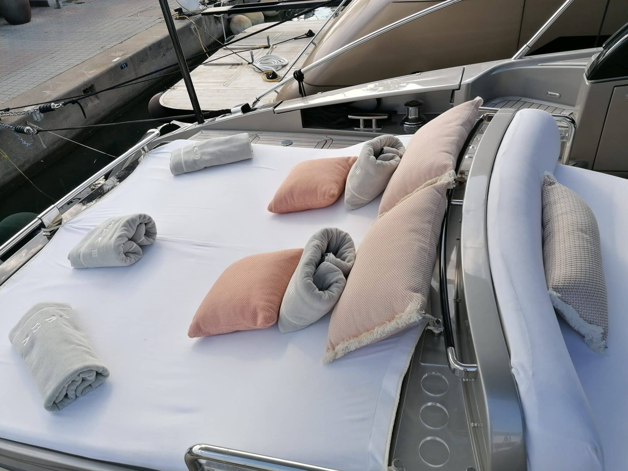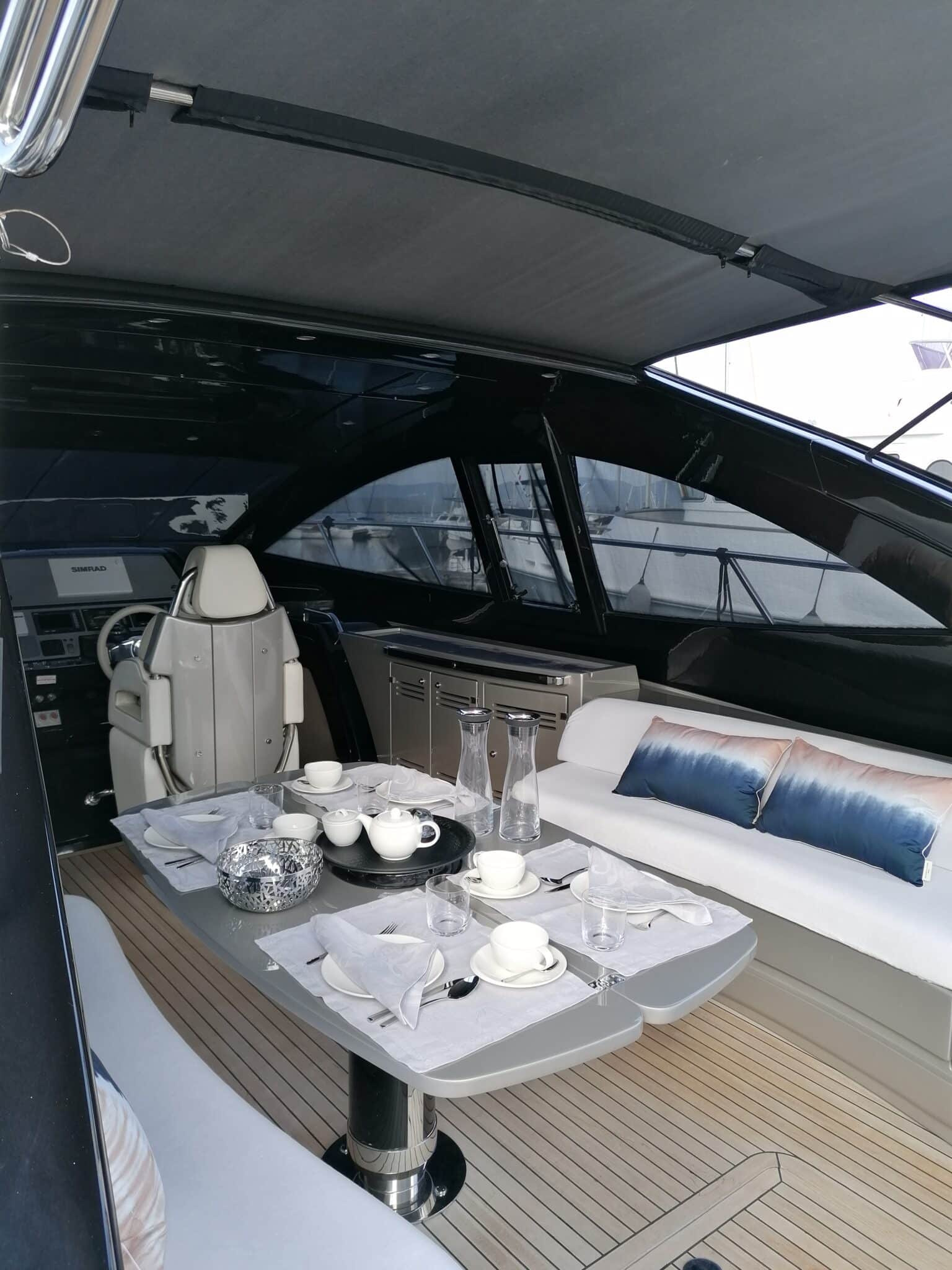One of the highlights of this Riva yacht charter is the convenience of having two toilets with a shower, ensuring that guests can freshen up and relax in privacy. The yacht features state-of-the-art facilities, including radar, generator, salon GPS plotter, BBQ and bimini. The interior of this Riva yacht charter will also not disappoint! Inside, guests can enjoy a comfortable stay. It features amenities such as flat screen TV, heating, air conditioning, audio system, and outside speakers. The galley contains a freezer, cooker, sink, and kitchen utensils. Everything you need aboard this Riva yacht charter!
