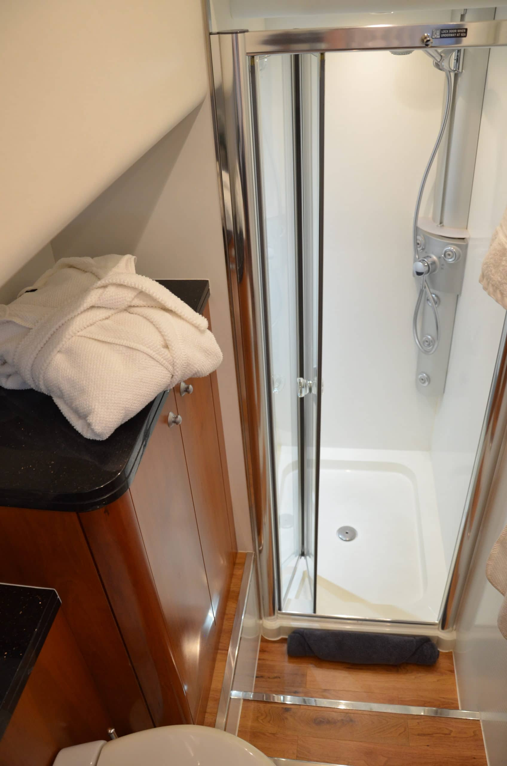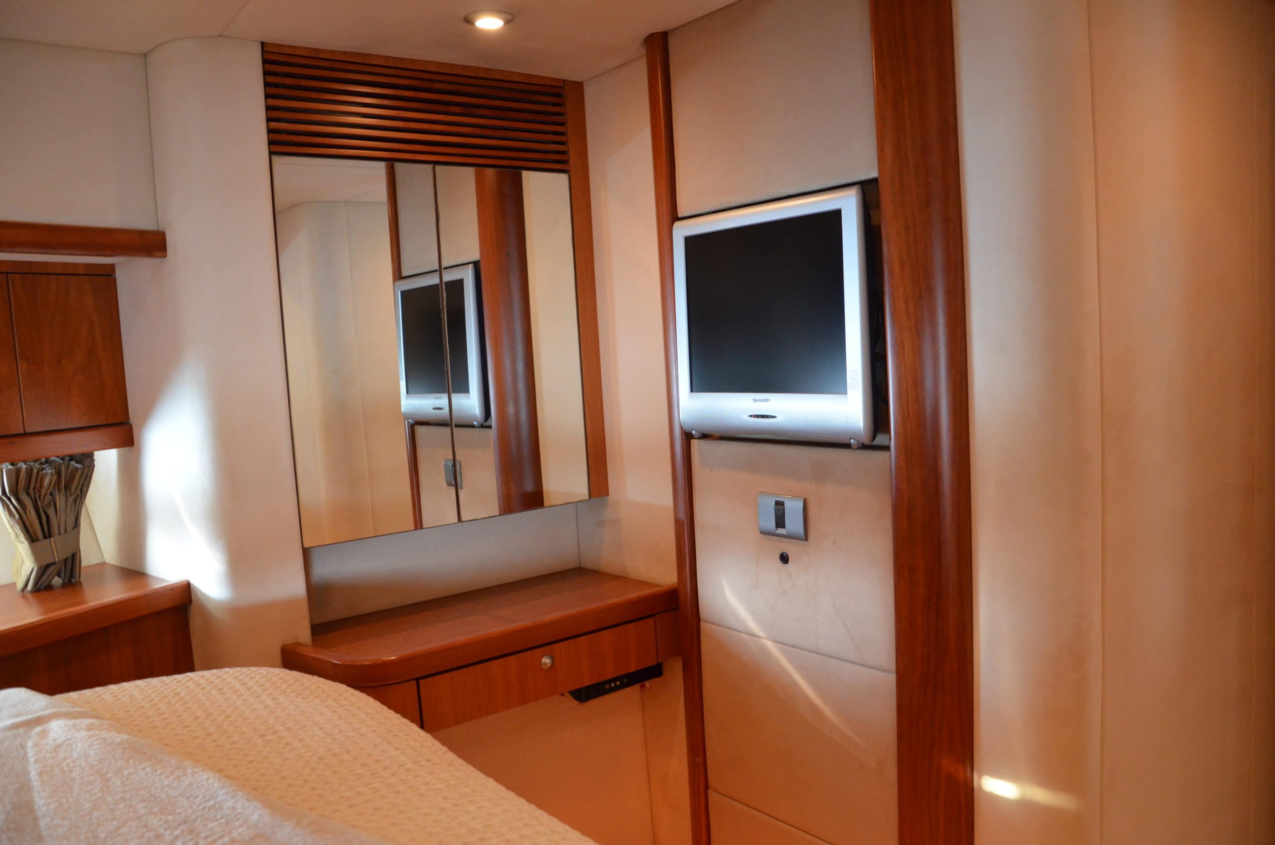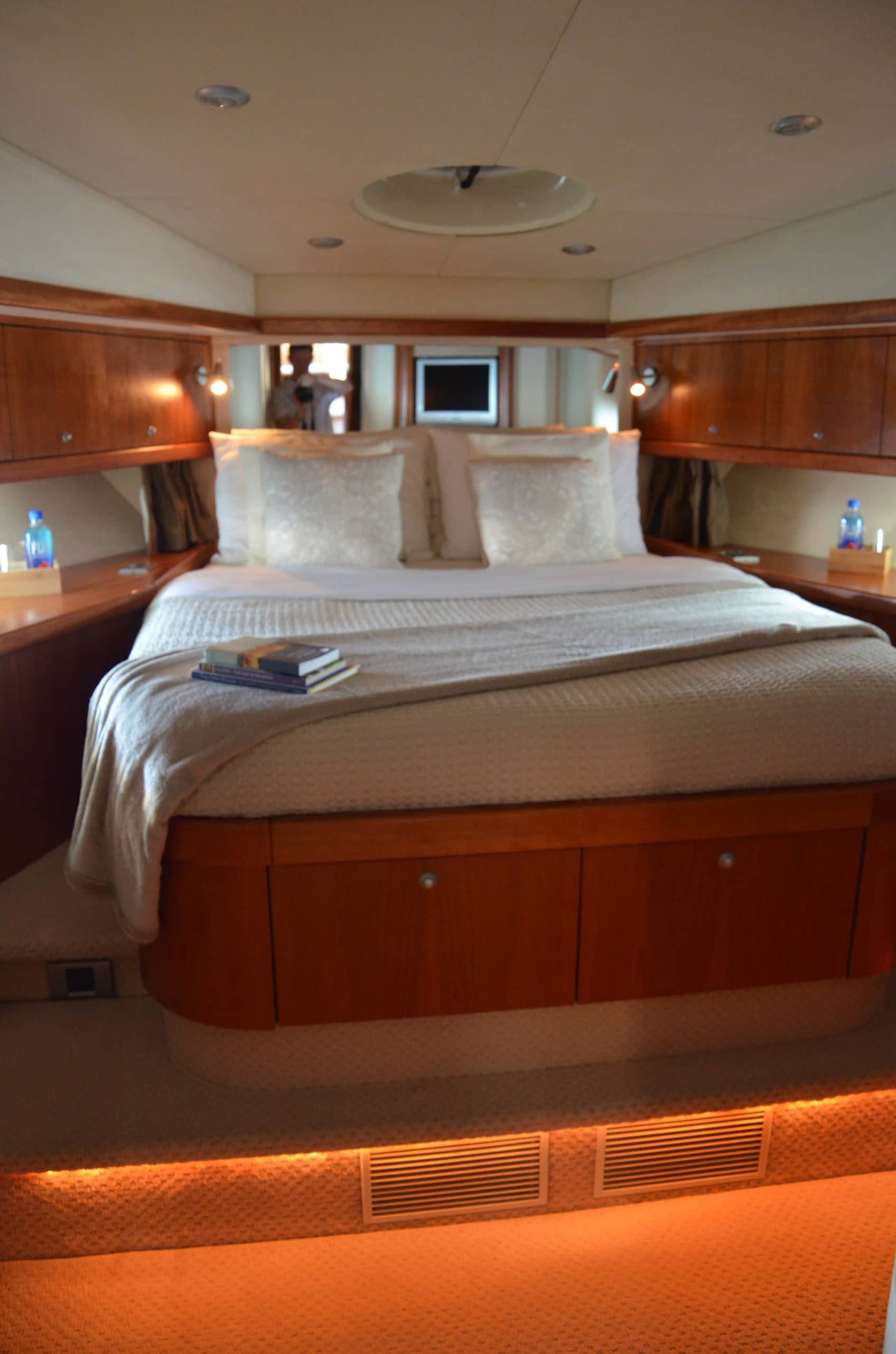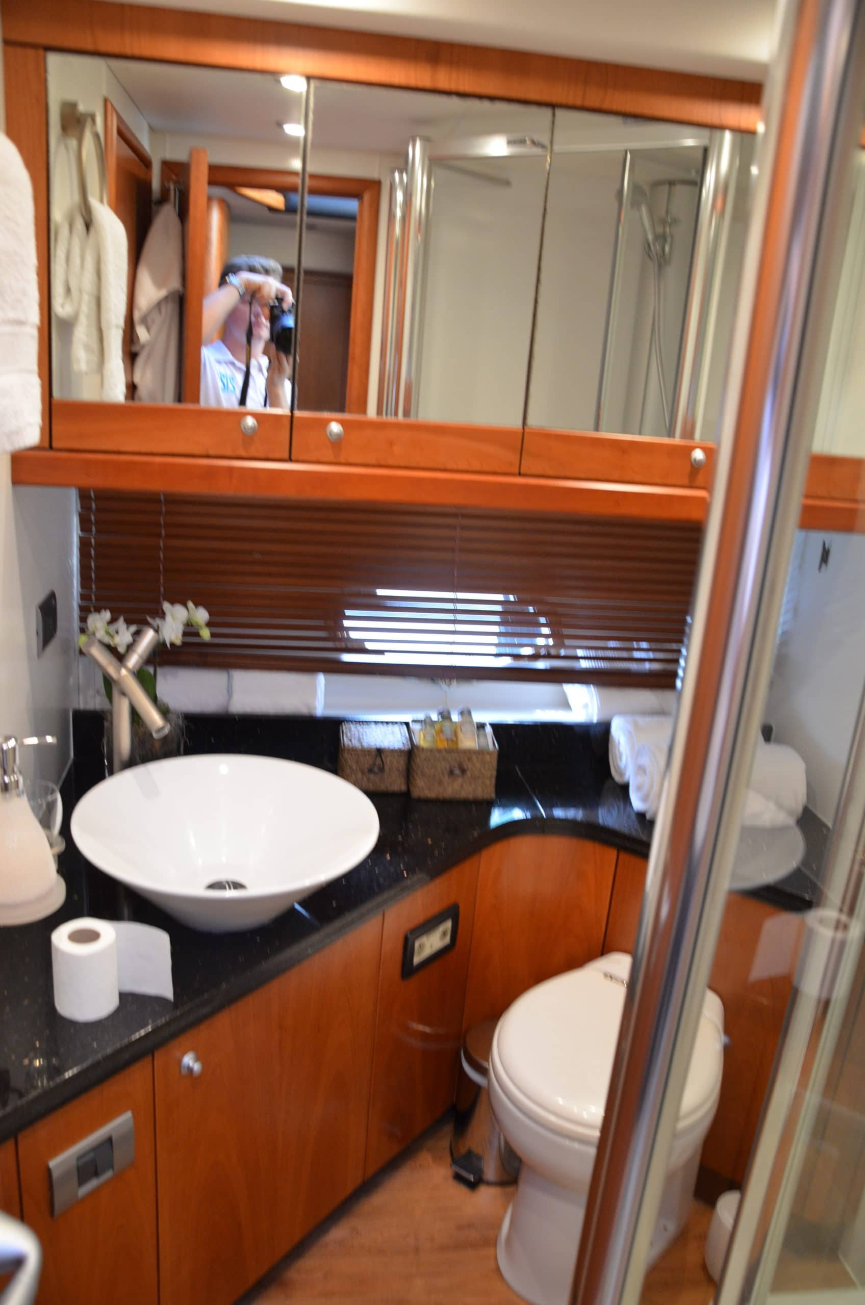 Inside Fortuna Star are three homely, well-designed cabins (2 double, 1 twin) that can sleep up to six guests (all have TVs) and which for the size of the yacht are most spacious. The vip and master cabin host his and hers sinks.