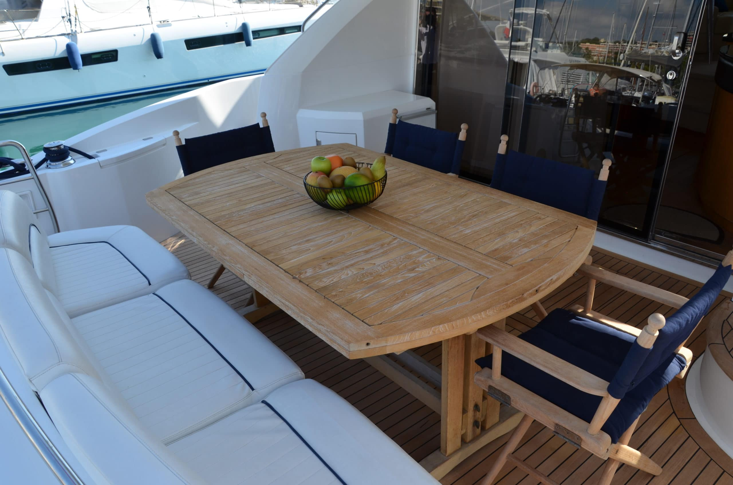 Why rent Fortuna Star? She is part of the incredibly popular Sunseeker Manhattan range – notorious for its excellent use of space. Well looked after by the excellent crew and with a 2020 refit of teak and some upholstery, she is in prime condition for charter.