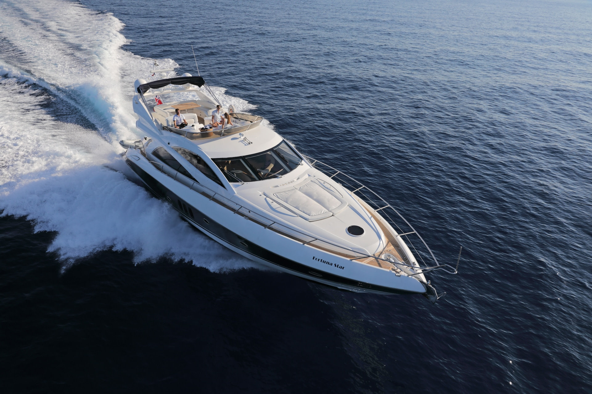 Why rent Fortuna Star? She is part of the incredibly popular Sunseeker Manhattan range – notorious for its excellent use of space. Well looked after by the excellent crew and with a 2020 refit of teak and some upholstery, she is in prime condition for charter.